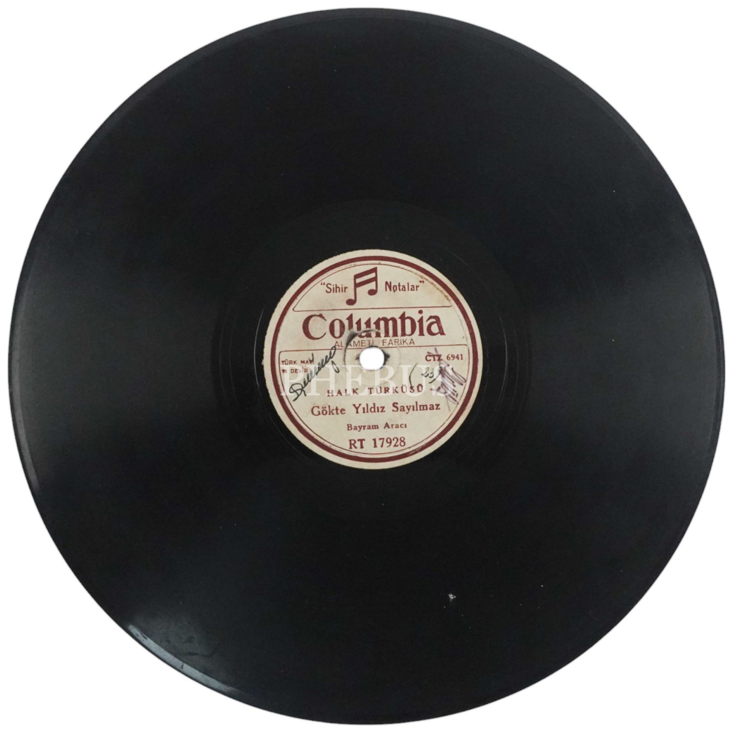 A YÜZÜ: GÖKTE YILDIZ SAYILMAZ, B YÜZÜ: BÜLBÜLE SU VERDİM ALTIN TAS İLE, Seslendiren: Bayram Aracı, Sahibinin Sesi