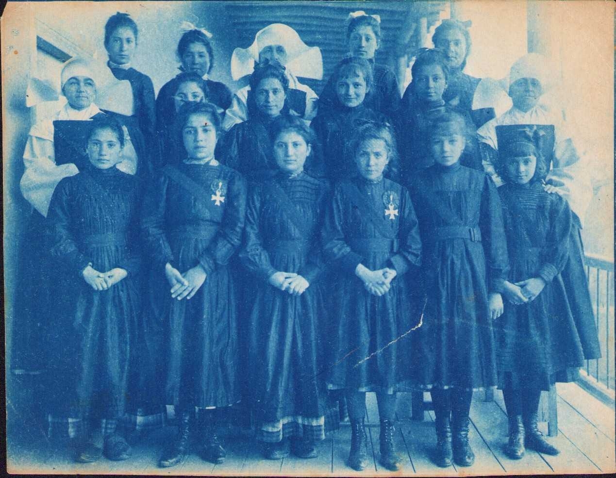 Erken dönem madalyalı kız öğrenciler, 10x8 cm