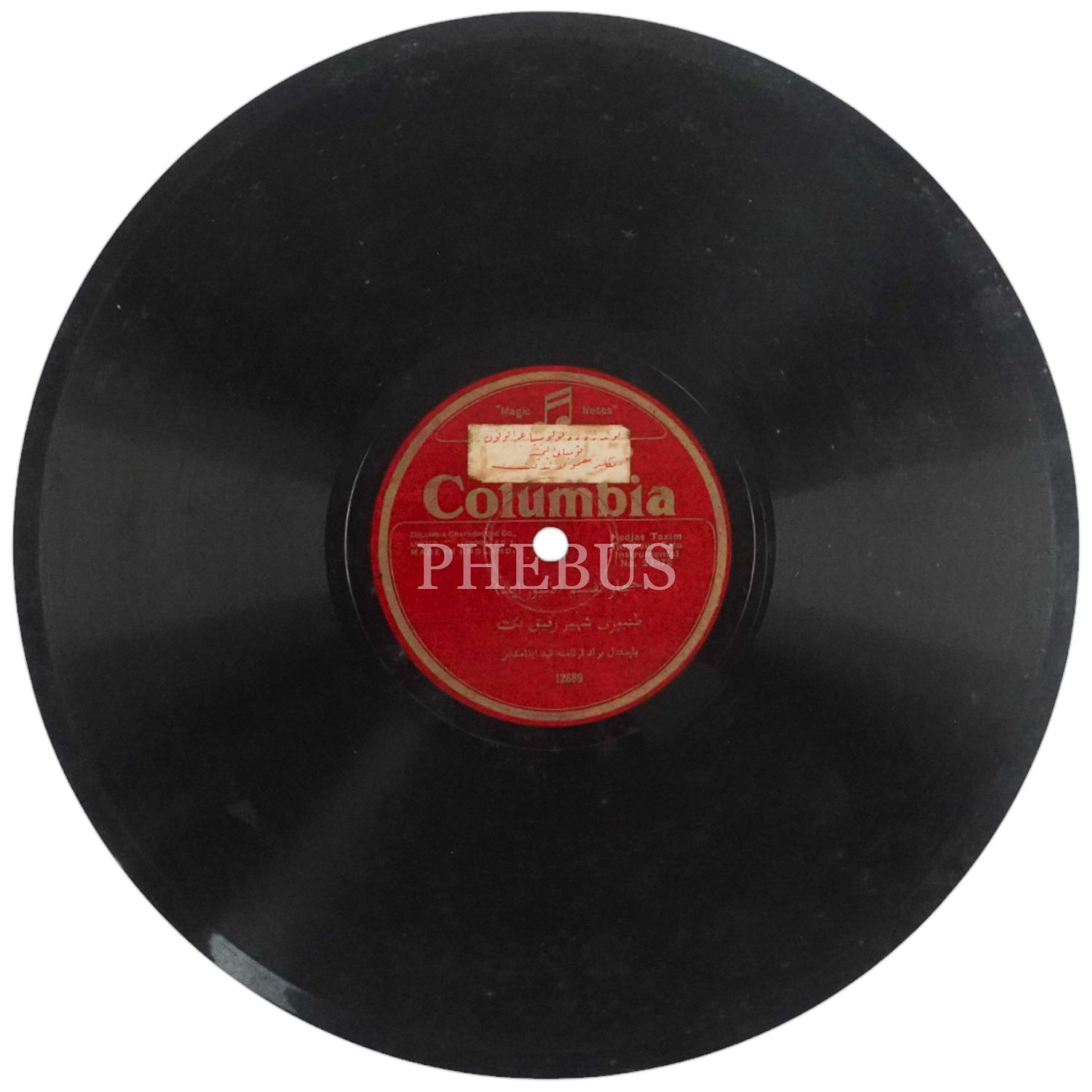 A YÜZÜ: HİCAZ TAKSİM TAMBUR SOLO INSTRUMENTAL, Seslendiren: Tanburi Şehir Refik Bey, B YÜZÜ: EY BENİM GONCA, Seslendiren: S.... Bey, Columbia