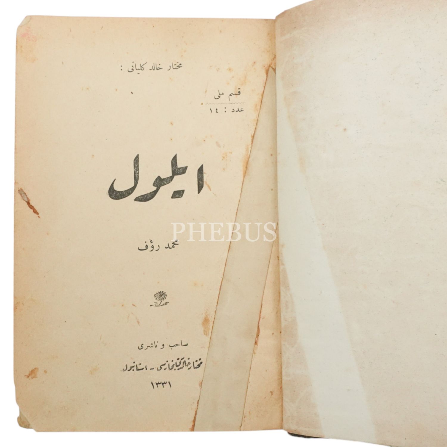 EYLÜL, Mehmed Rauf, 1331, Muhtar Halid Kitaphanesi, 428 sayfa, 12x17 cm..
