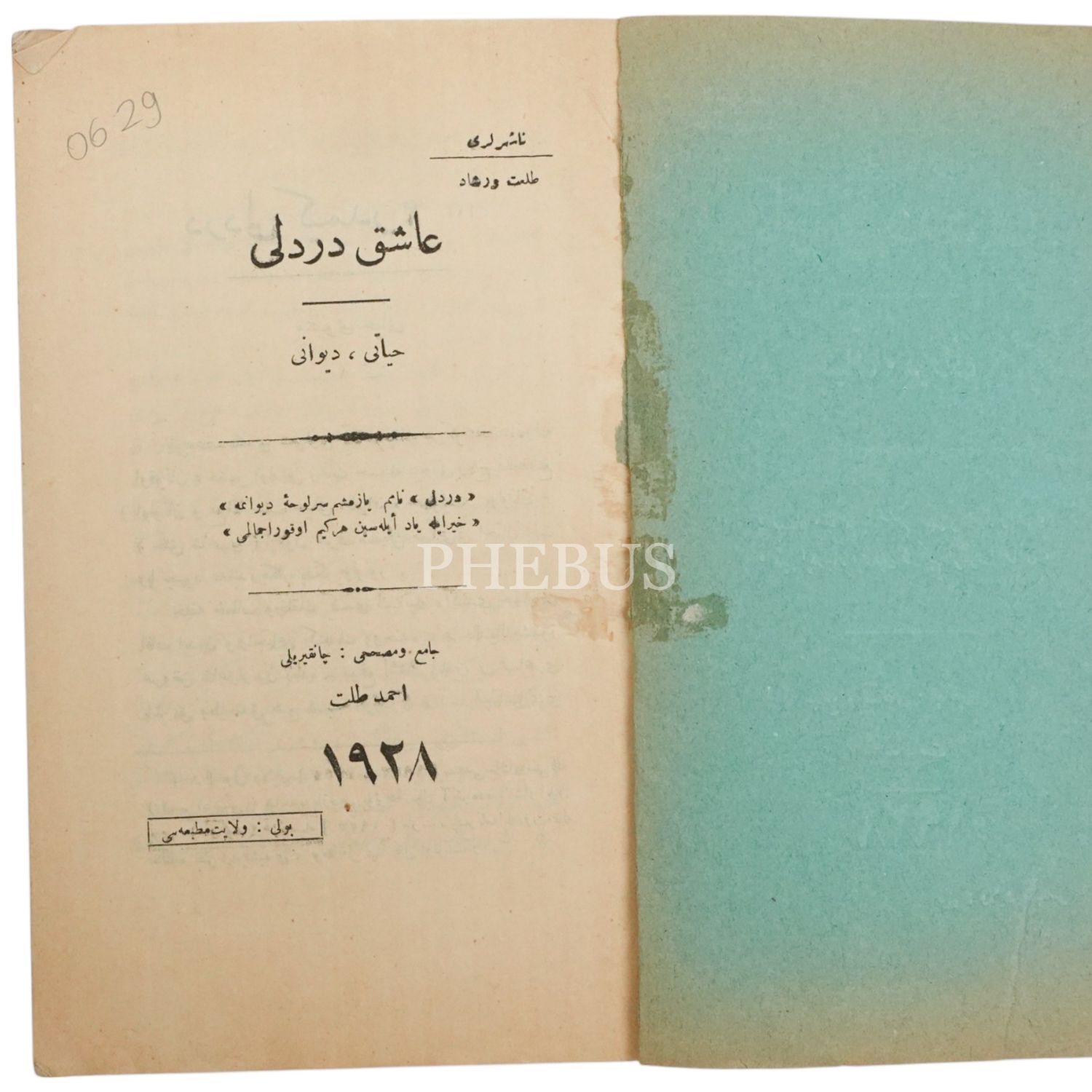 AŞIK DERTLİ HAYATI VE DİVANI, (Derleyen: Çankırılı Ahmed Talat - Reşad), 1928, Bolu Vilâyet Matbaası, 165 sayfa, 15x21 cm...