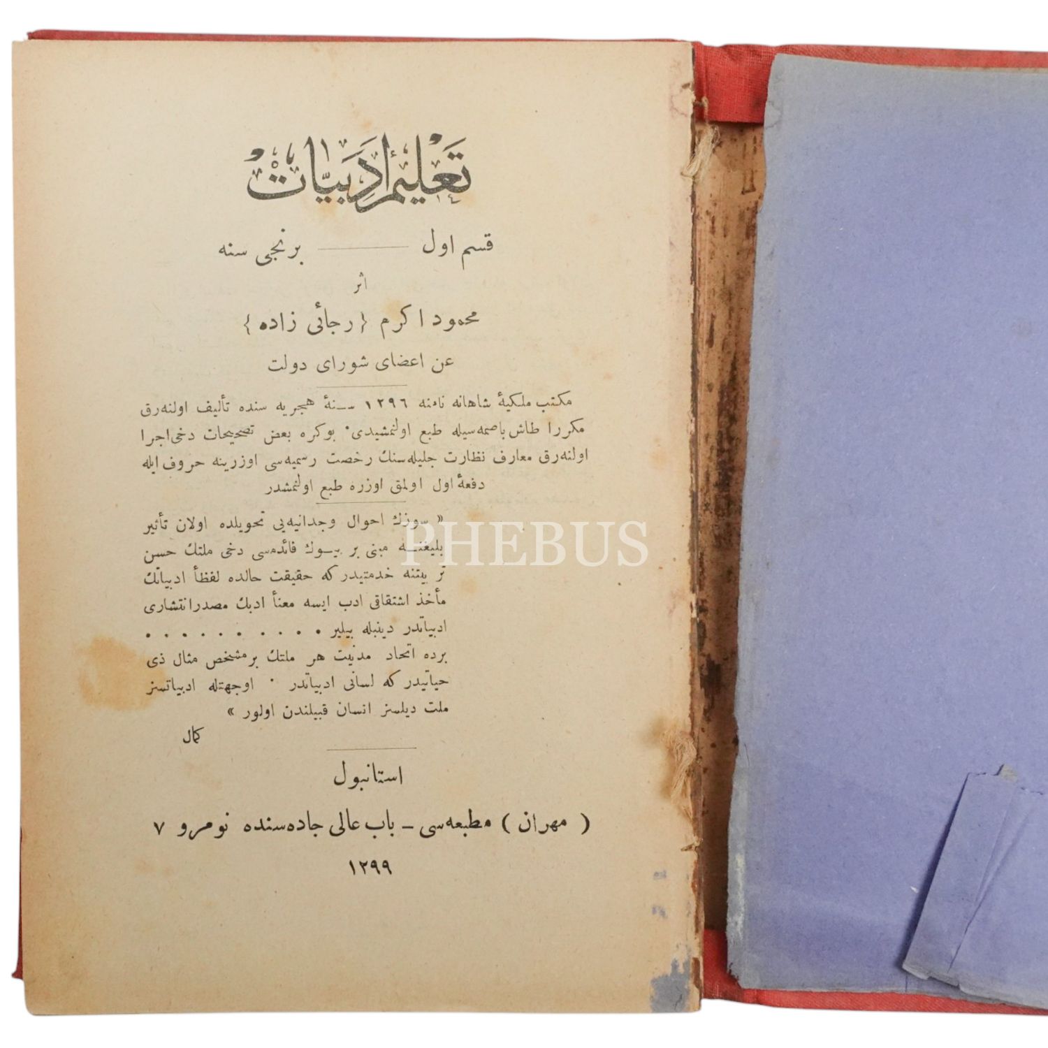 TALİM-İ EDEBİYAT, Recaizade Mahmut Ekrem, 1299, Mihran Matbaası, 398 sayfa, 14x20 cm...
