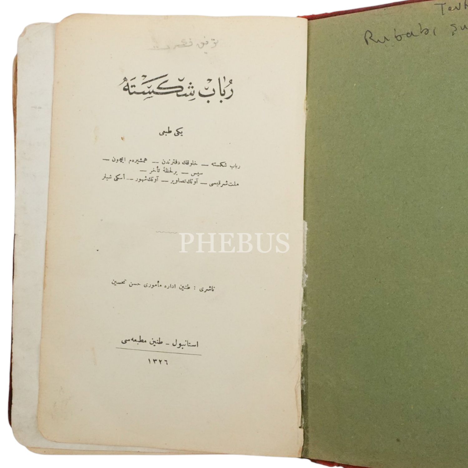 RÜBAB-I ŞİKESTE, Tevfik Fikret, 1326, Tanin Matbaası, 411 sayfa, 18x12 cm...