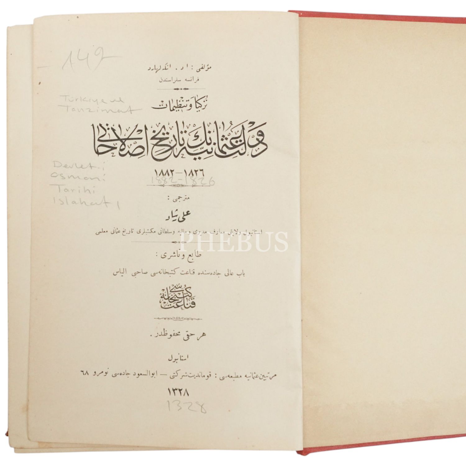 TÜRKİYE VE TANZİMAT: DEVLET-İ OSMANİYE´NİN TARİH-İ ISTILAHI, Eduard Philippe Engelhart, (çeviren: Ali Reşat), 1328, Mürettibîn-i Osmaniye Matbaası, 496 sayfa, 16x25 cm...