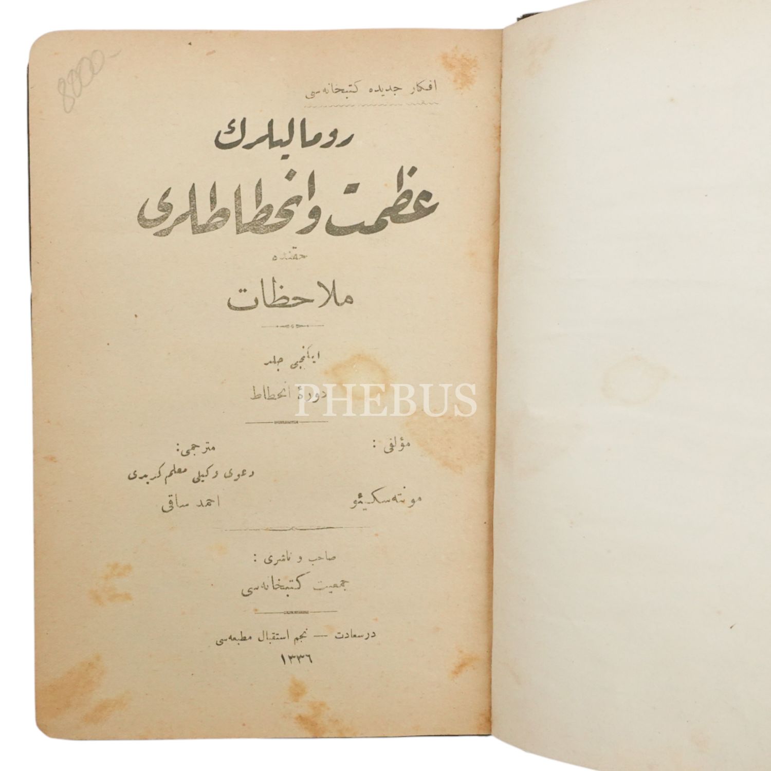 ROMALILARIN AZAMET VE İNHİTATLARI HAKKINDA MÜLAHAZAT (2. Cilt), Montesquieu, (Çeviren: Ahmed Saki), 1336, Necm-i İstikbal Matbaası, 152 sayfa, 14x20 cm...