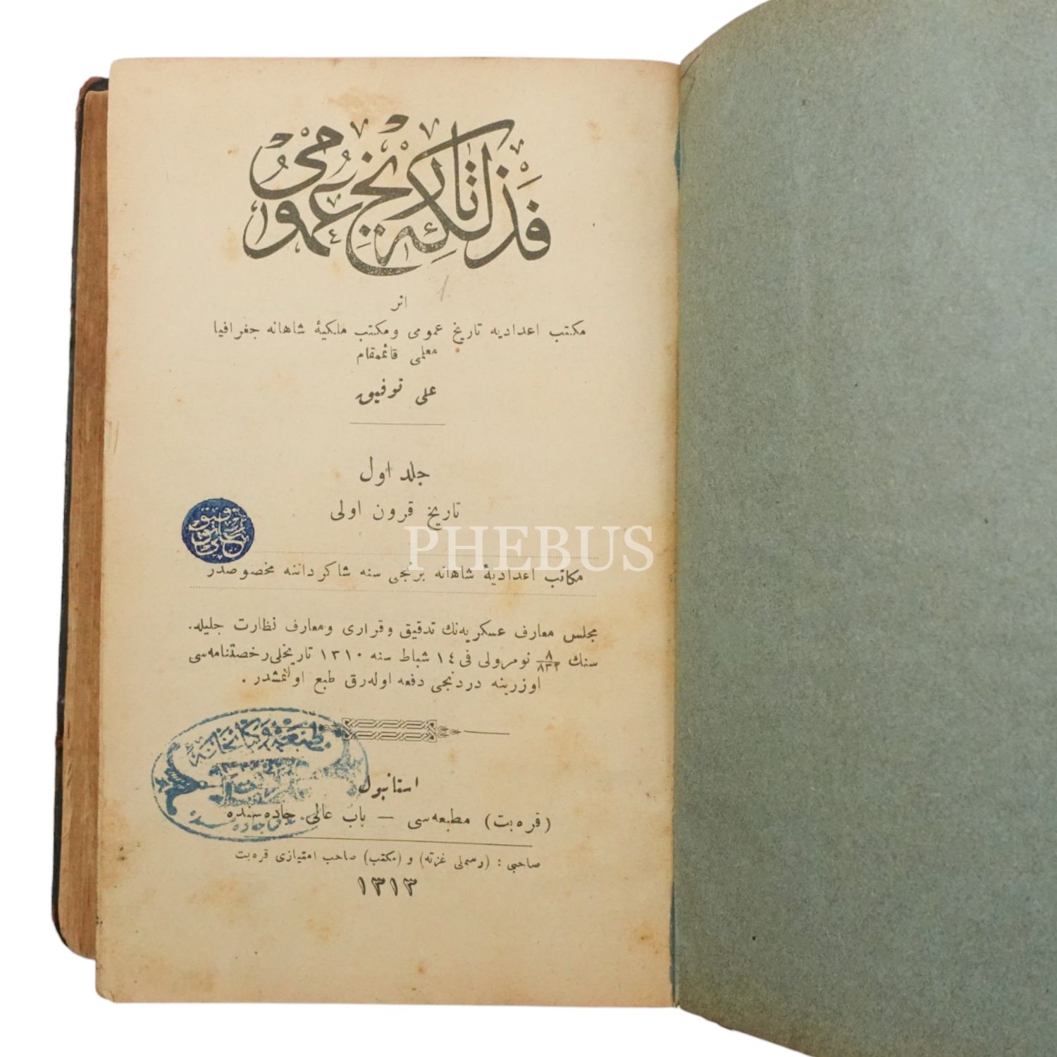 FEZLEKE-İ TARİH-İ UMUMİ (1. Cilt), Ali Tevfik, 1313, Karabet Matbaası, 194 sayfa, 13x18 cm...