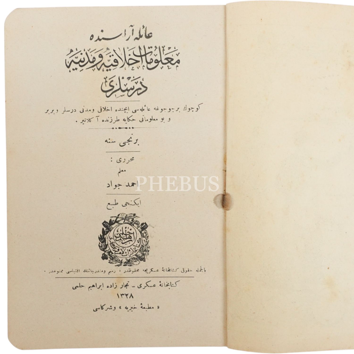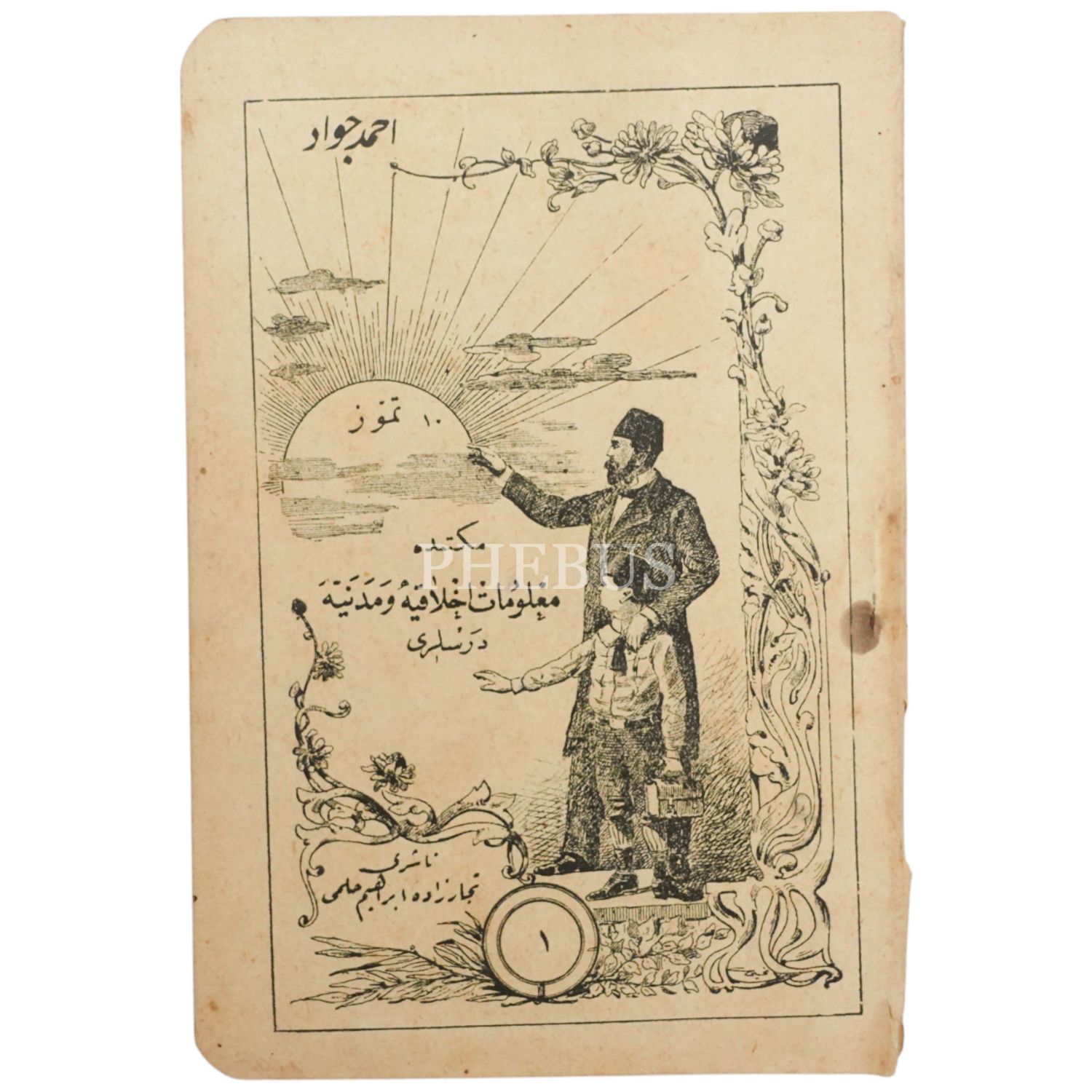MEKTEPTE MALUMAT-I AHLAKİYE VE MEDENİYE DERSLERİ, Ahmed Cevad, 1328, Tüccarzade İbrahim Hilmi, 103 sayfa, 12x18 cm...
