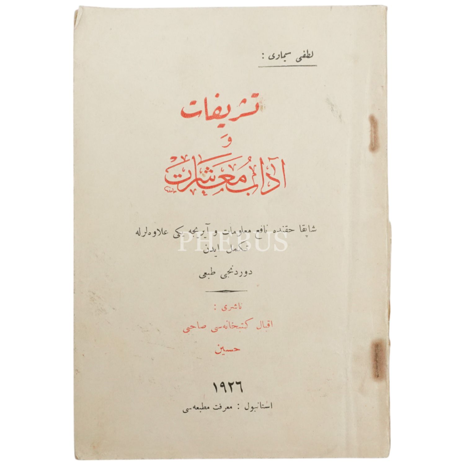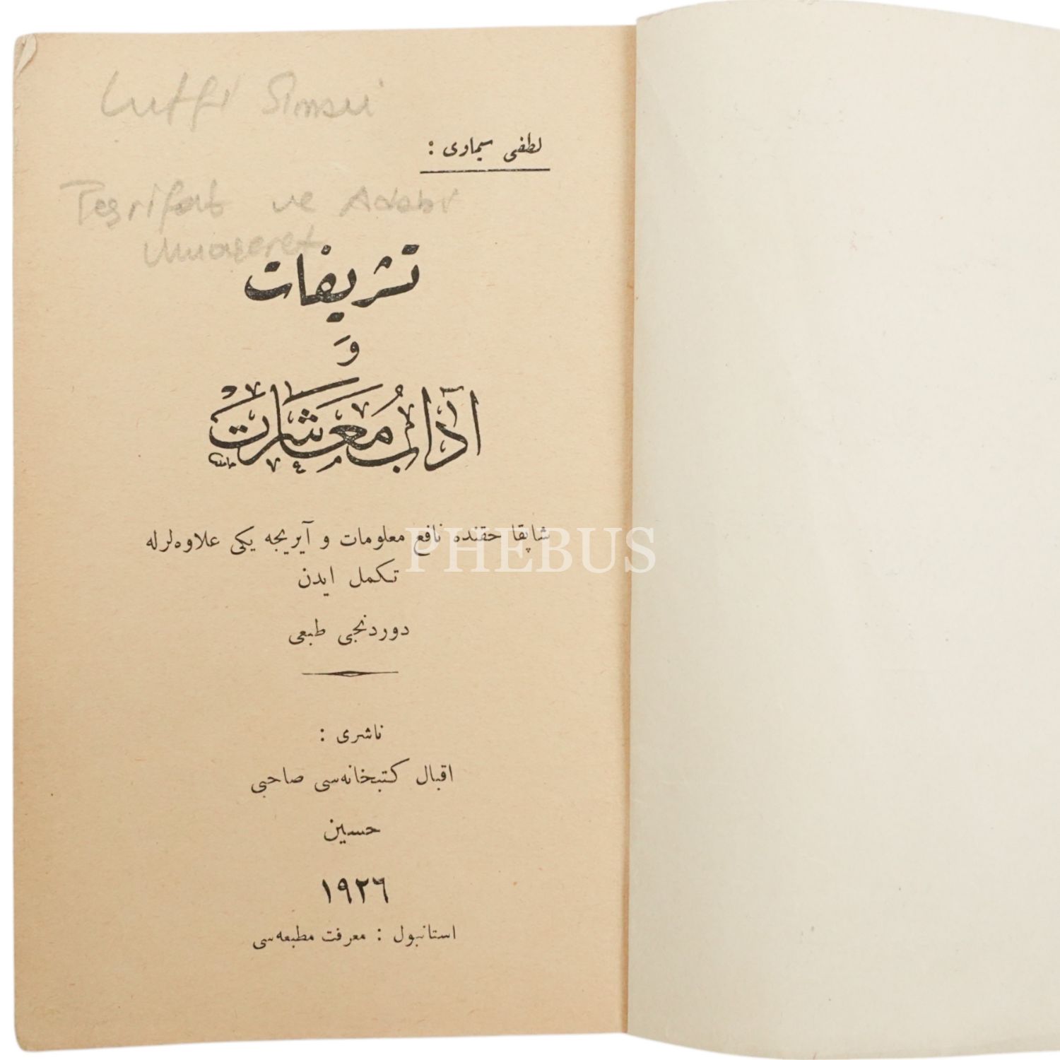 TEŞRİFAT VE ADAB-I MUAŞERET, Lütfi Simavi, 1926, Marifet Matbaası, 66 sayfa, 12x18 cm...