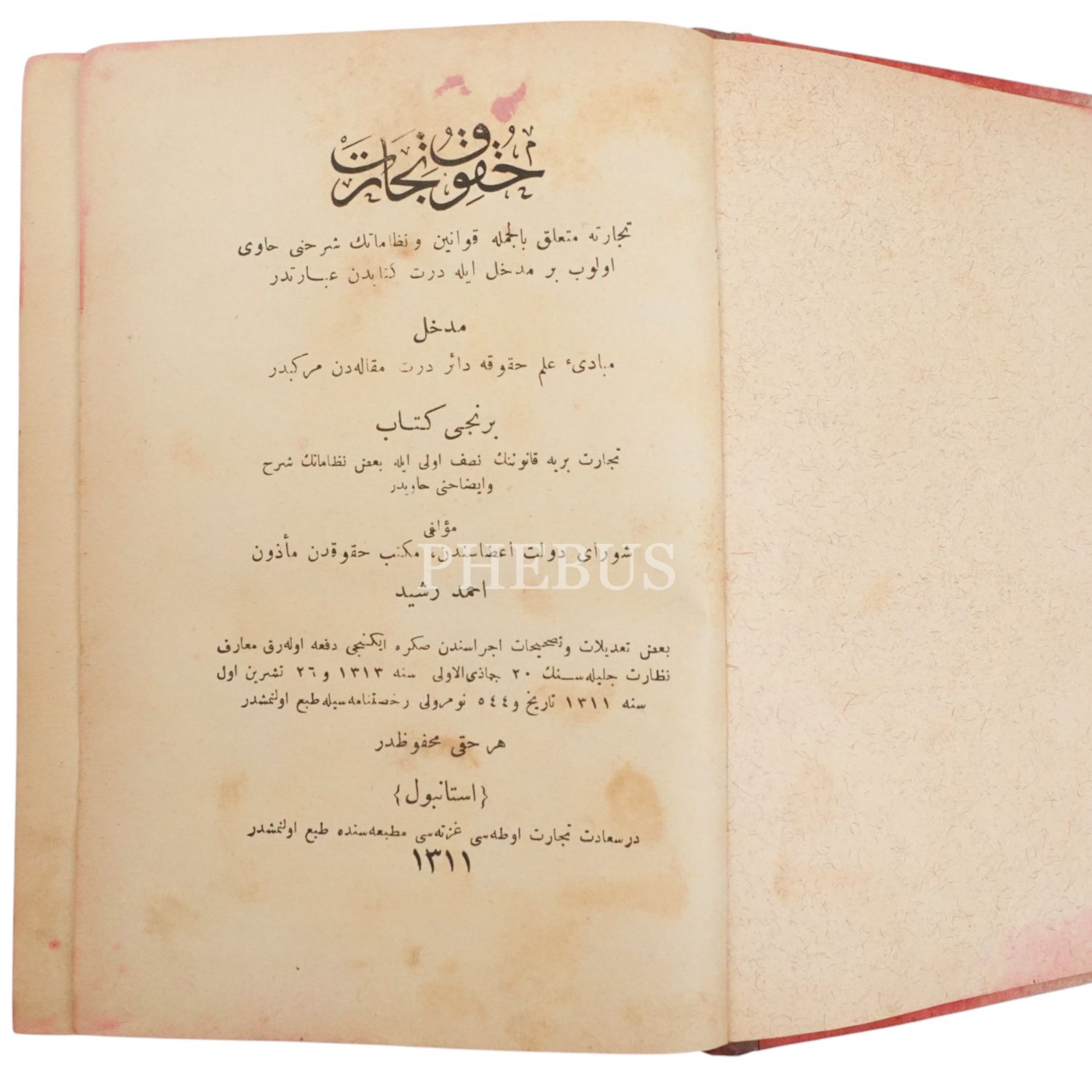 HUKUK-U TİCARET, Ahmed Reşit, 1311, Ticaret Odası Gazetesi Matbaası, 874 sayfa, 14x20 cm...
