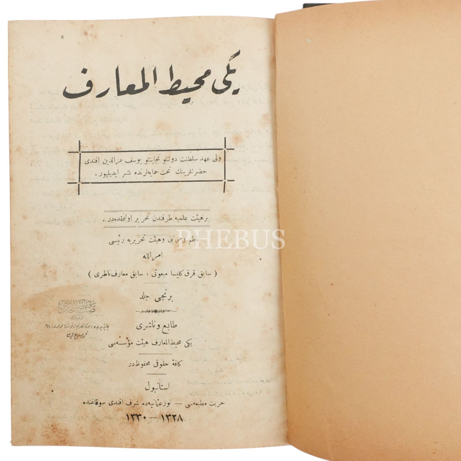 YENİ MUHİTÜ´L-MAARİF (1. Cilt), Emrullah, 1330, Hürriyet Matbaası, 752 sayfa, 17x24 cm...