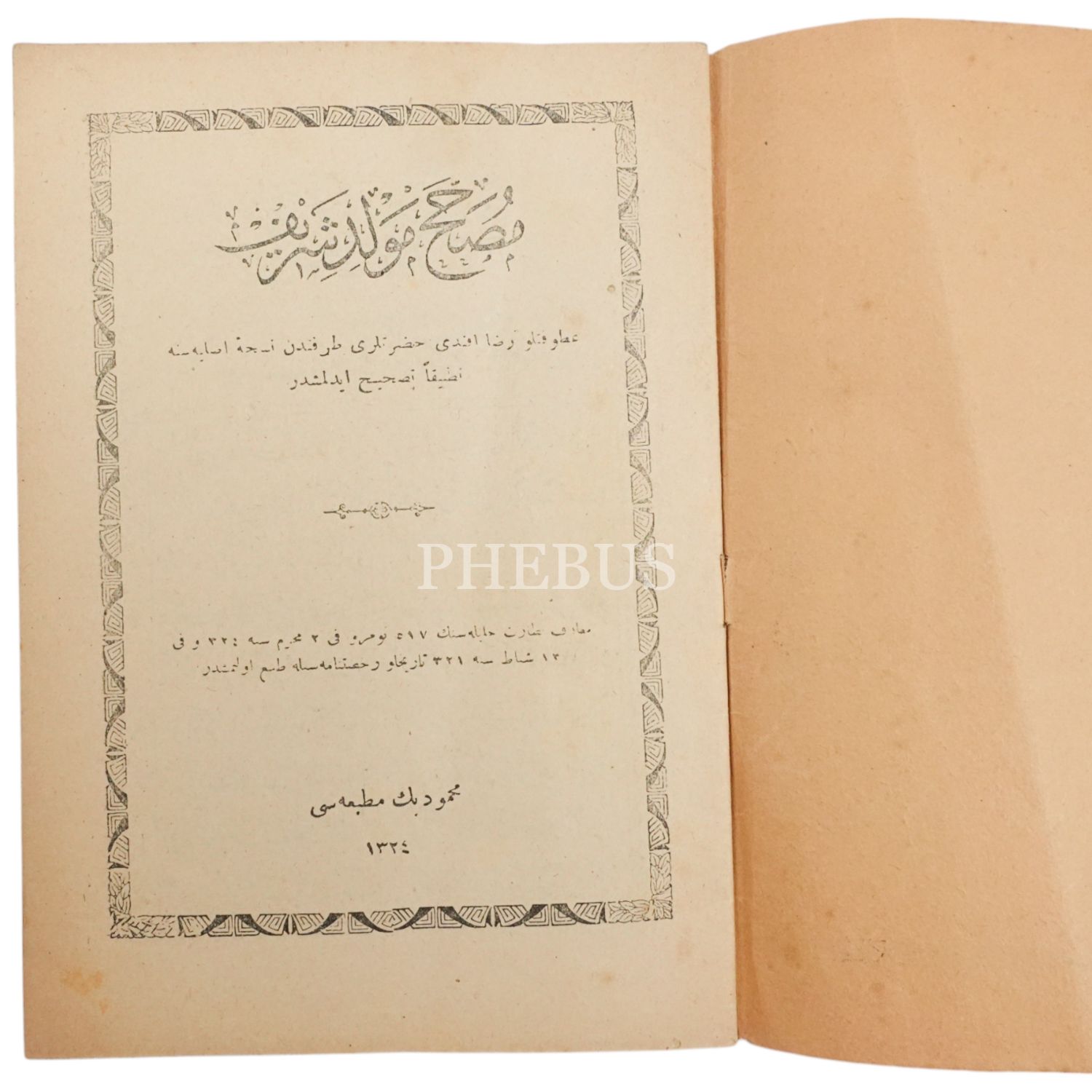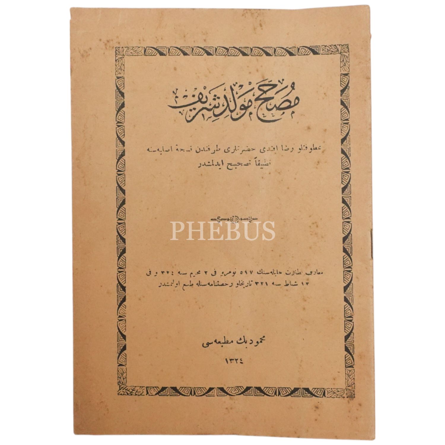 MUSAHHAH MEVLİD-İ ŞERİF, Rıza Efendi, 1324, Mahmud Bey Matbaası, 31 sayfa, 14x20cm...