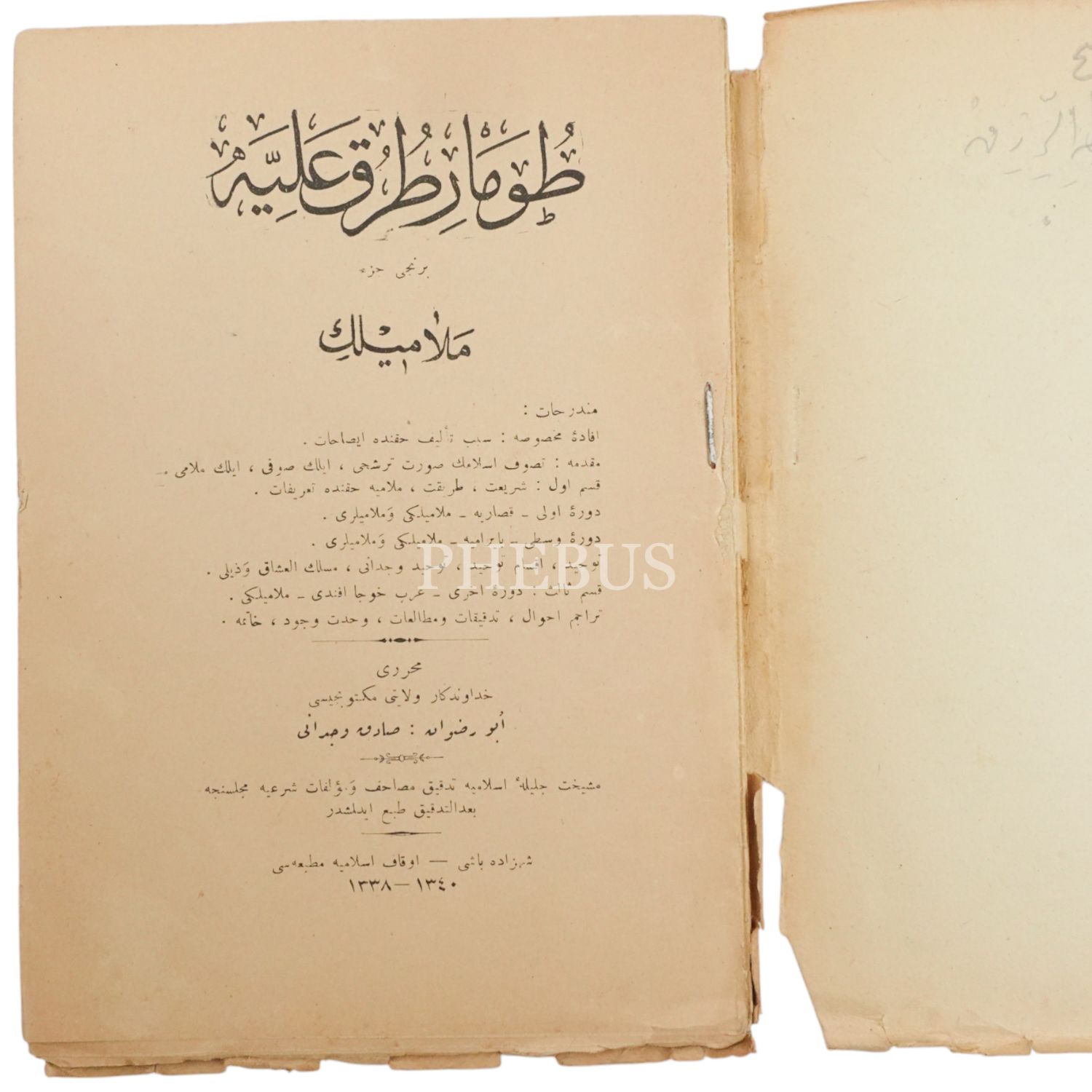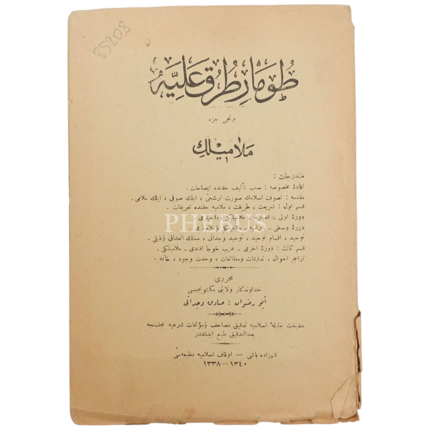 TOMAR-I TURUK-I ALİYE (Melamilik) Ebu Rıdvan Sadık Vicdani, 1338, Evkaf- İslamiye Matbaası, 112 sayfa, 14x20 cm..