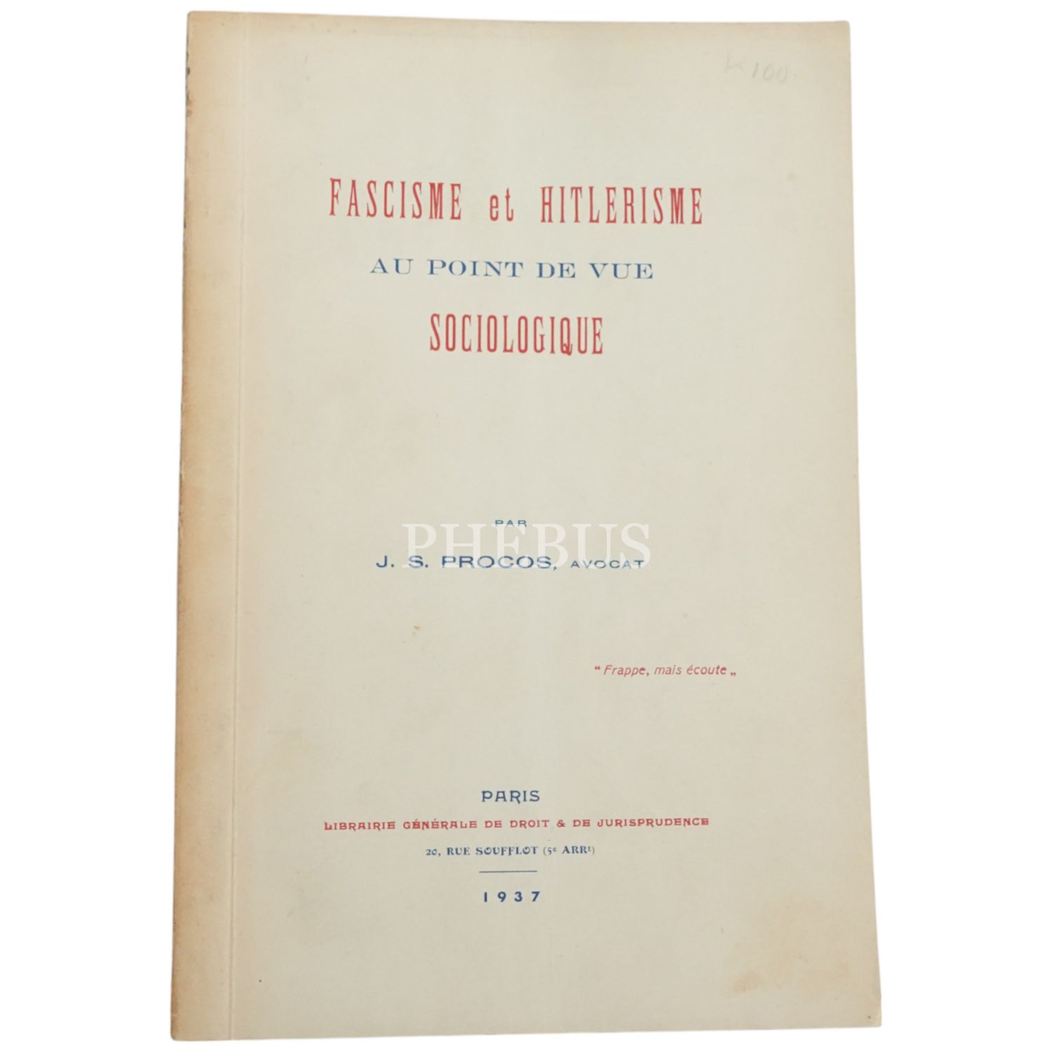 FASCISME ET HITLERISME AU POINT DE VUE SOCIOLOGIE, J.S. Procos, 1937, Librarie Generale de Droit, 60 sayfa, 16x24 cm...