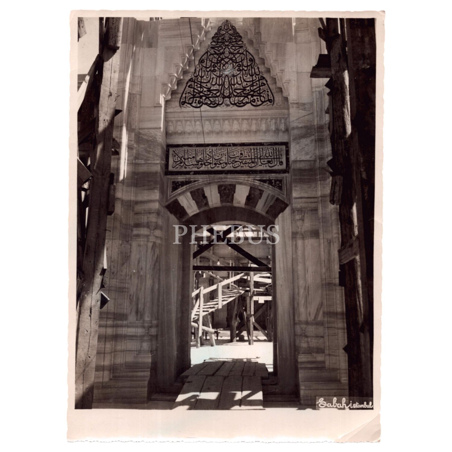 Hamid Aytaç´ın Şişli Camii kapısına yazdığı müsennâ şaheserin fotoğrafı.