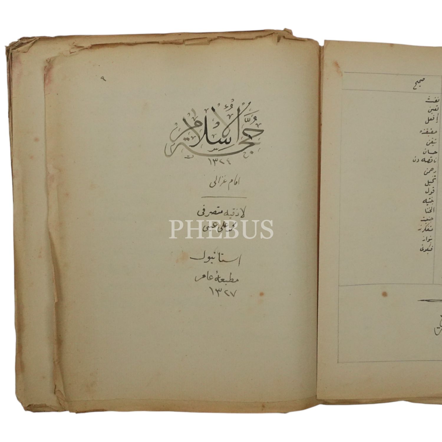 HÜCCETÜ´L-İSLÂM İMAM GAZÂLÎ, Mehmed Ali Aynî, Faik bin Siyahi Ahmed Paşa ketebeli, 1332-1914 tarihli, 367 sayfa, 24x18 cm...