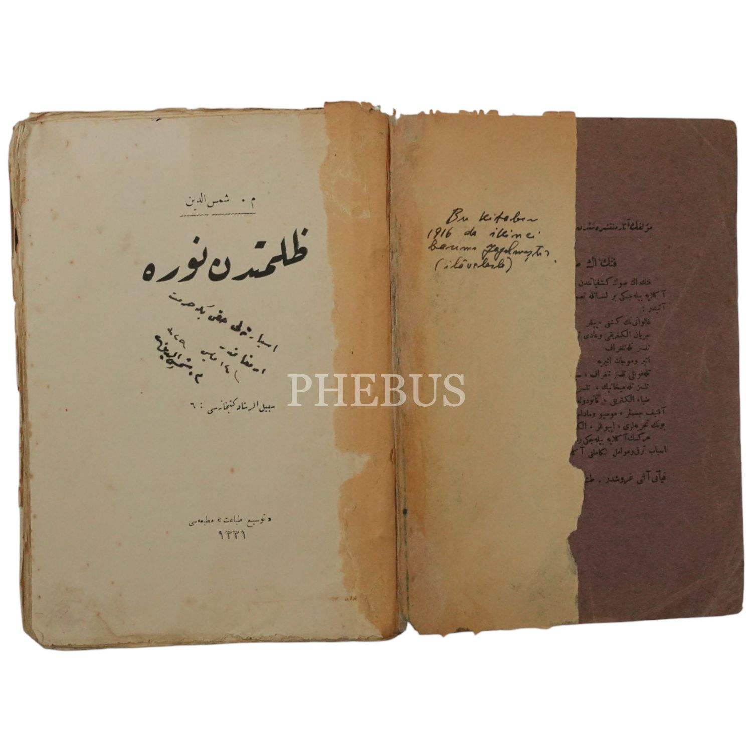 İmzalı ZULMETDEN NÛRA, M. Şemsettin Günaltay, 1331, 21x15 cm...