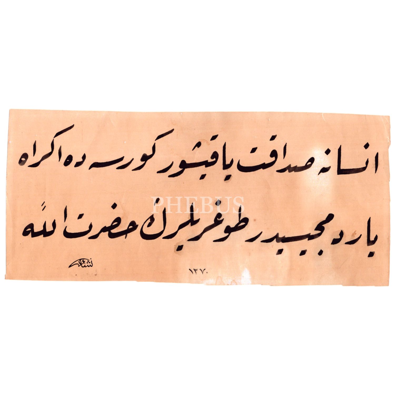 Celî rika kelâm-ı kibâr, ketebe: Neş´et, 1370 tarihli, 15x34 cm...