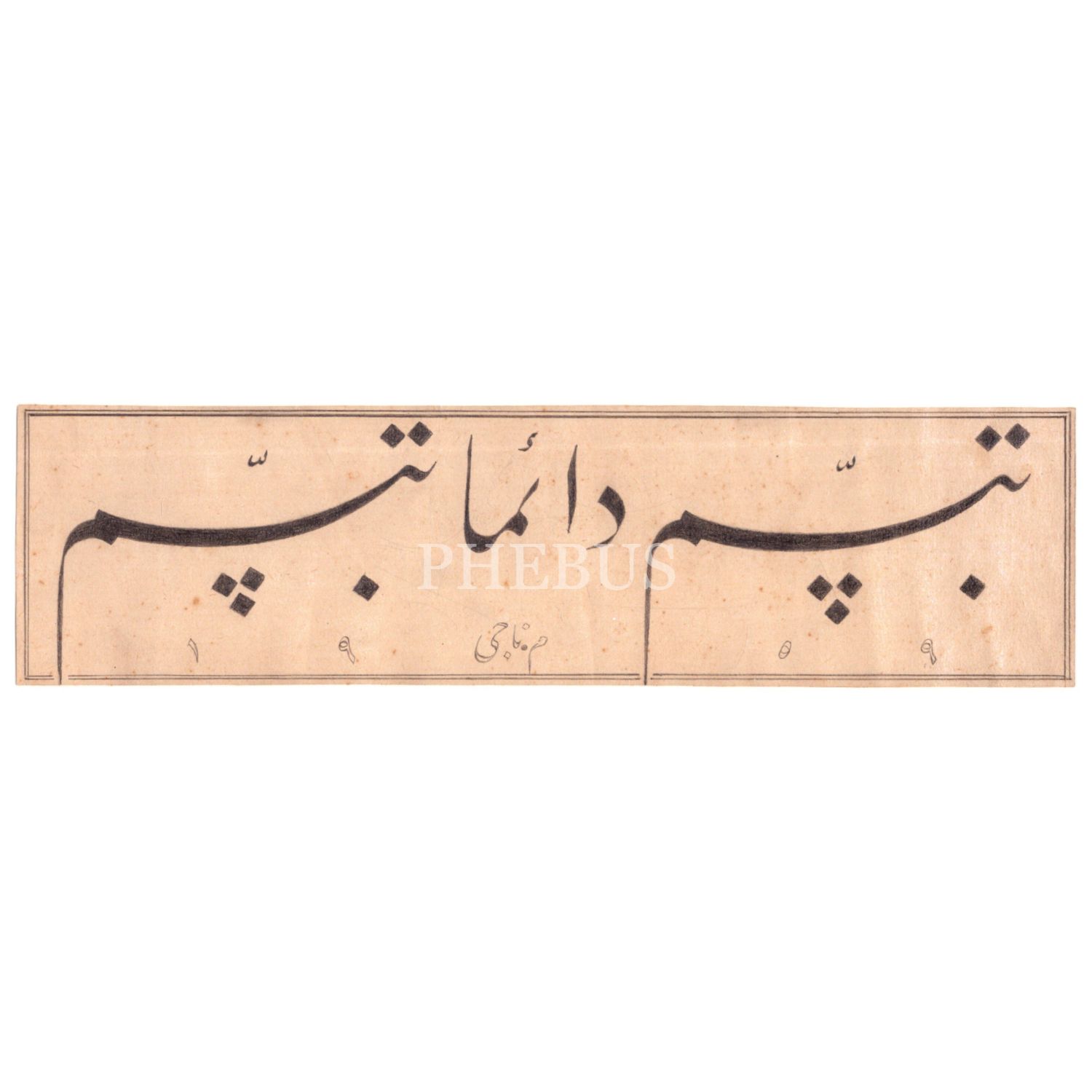 Naci (Akverdi) ketebeli kurşun kalem celî talik yazı, 1959 tarihli, 9x34 cm...