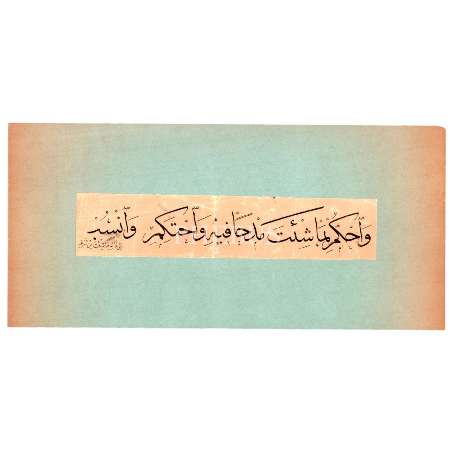 Hoca işi sülüs-nesih Kaside-i Bürde beyit, yazı ölçü:20x4 cm, kağıt ölçü: 30x14 cm...