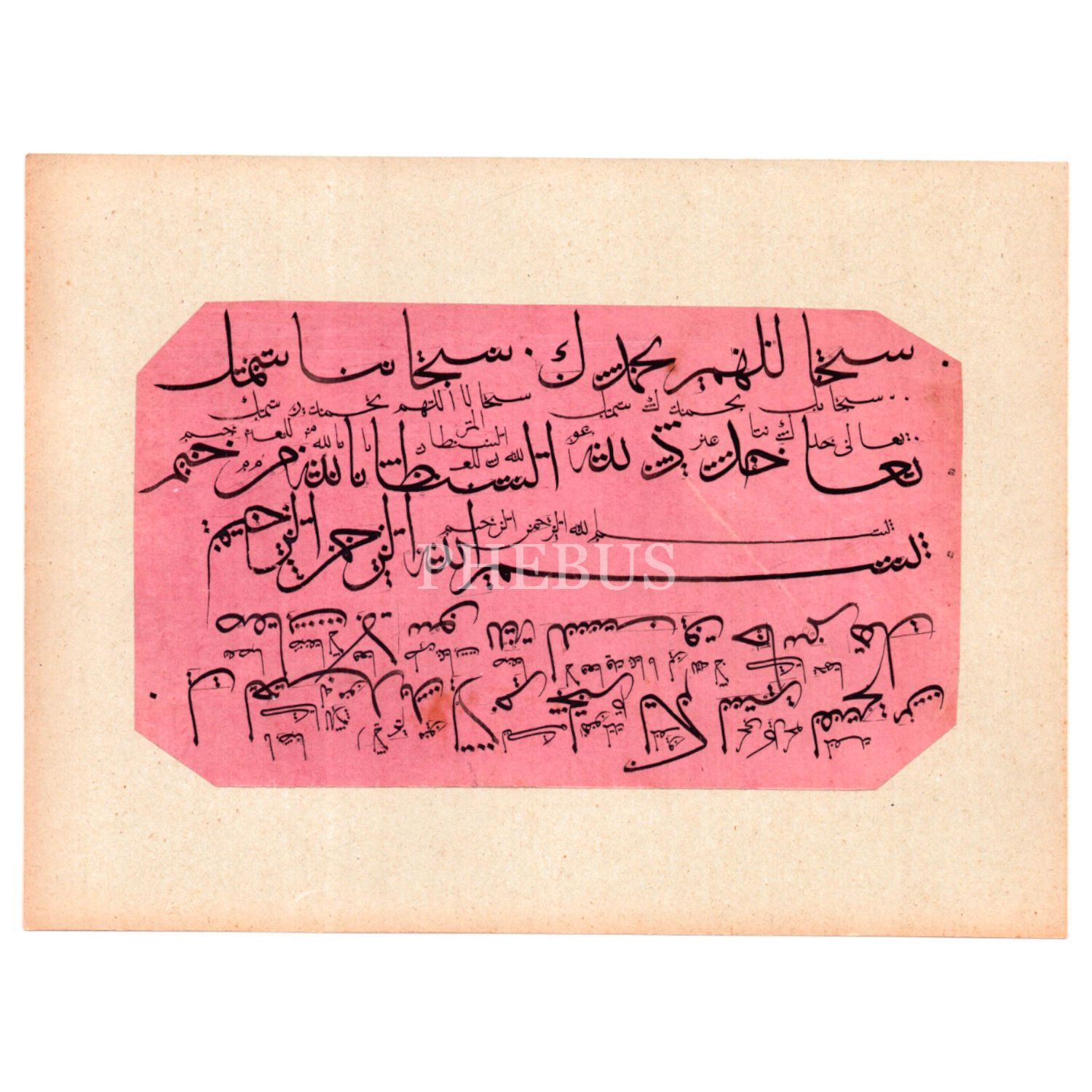 Sülüs-nesih besmele, sübhaneke ve hurufat meşki, yazı ölçü: 20x12 cm, 25x19 cm...