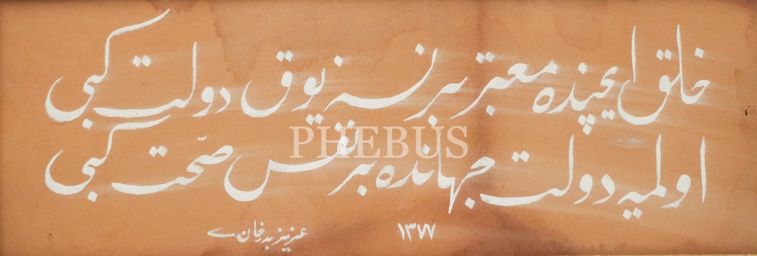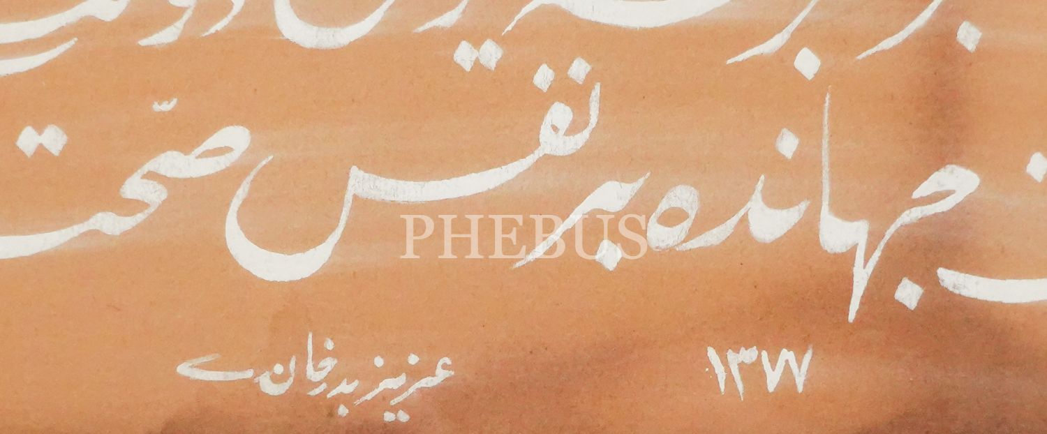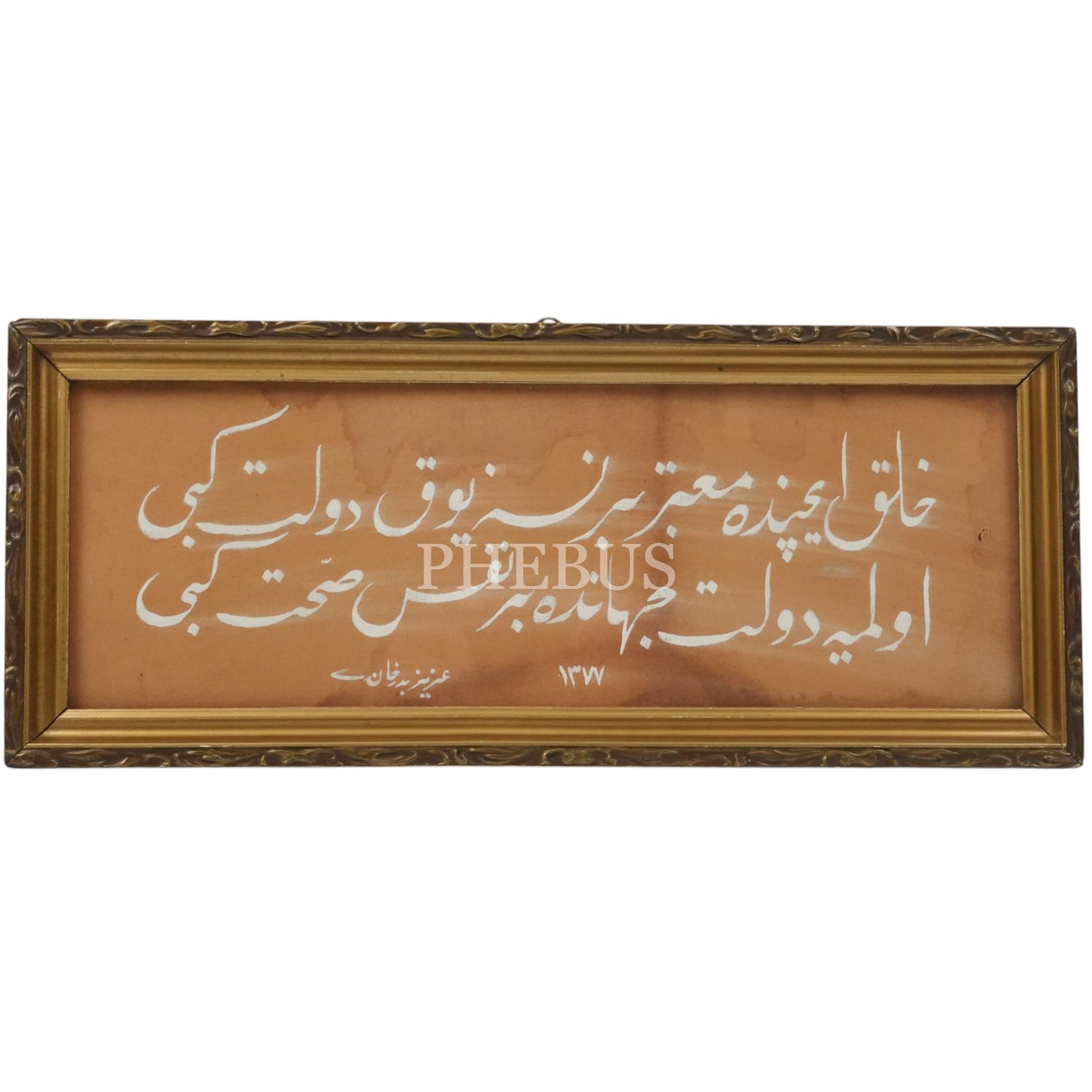 Aziz Bedirhan ketebeli talik üstübeç beyit, 1377 tarihli, çerçeve içi: 36x12 cm...
