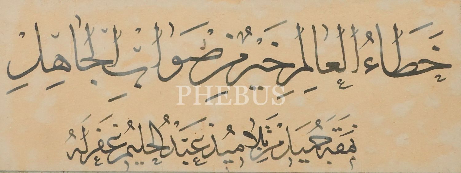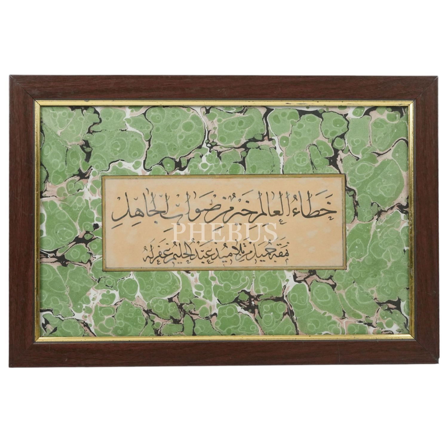 Anlamı: "Alimin hatası cahilin doğrusundan hayırlıdır." Ketebesinde "Abdülhalim´in talebesi Cemil" yazılıdır.