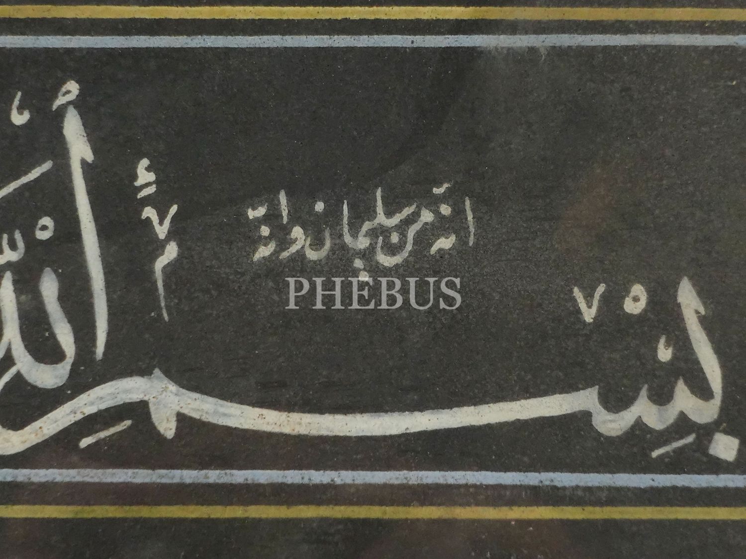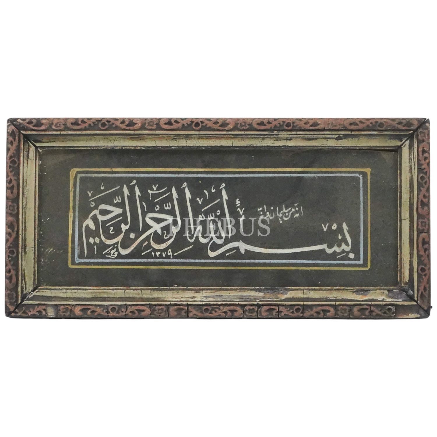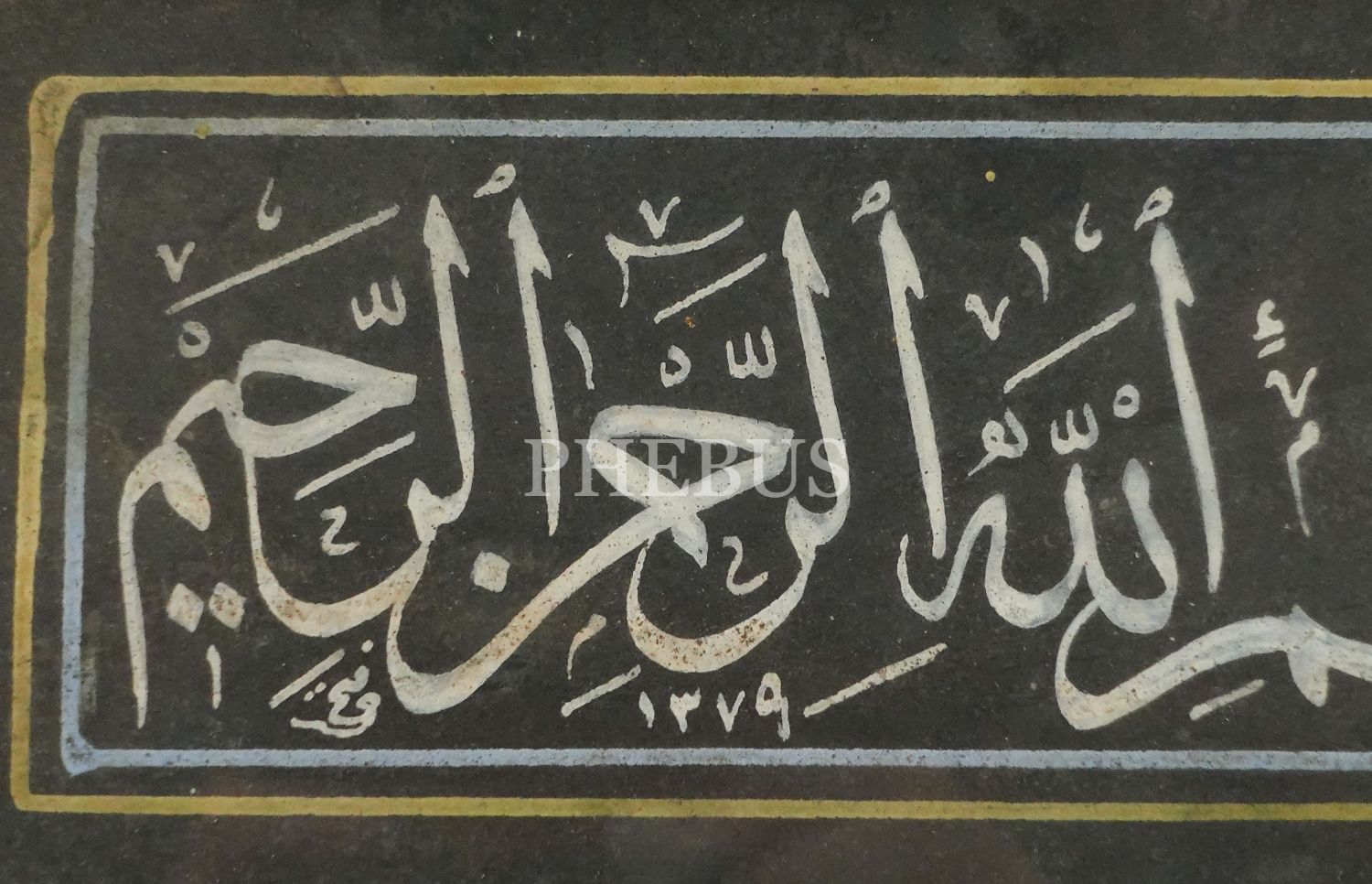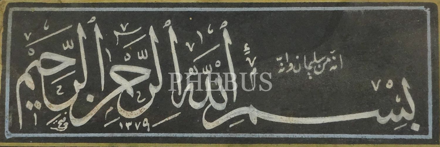 Fethi ketebeli sülüs oklu besmele, 1379 tarihli, yazı ölçü: 19x6 cm, çerçeve içi: 24x9 cm...