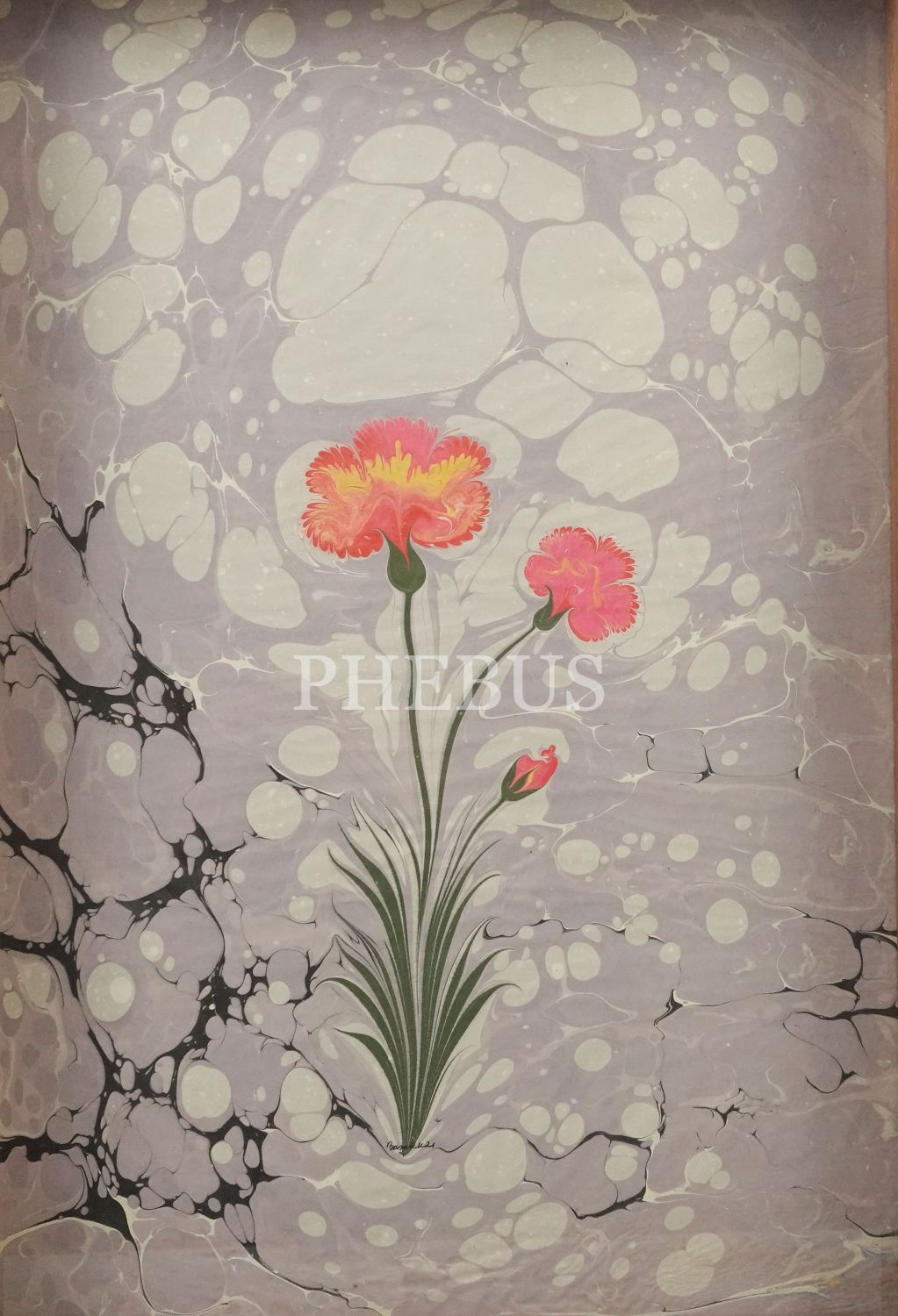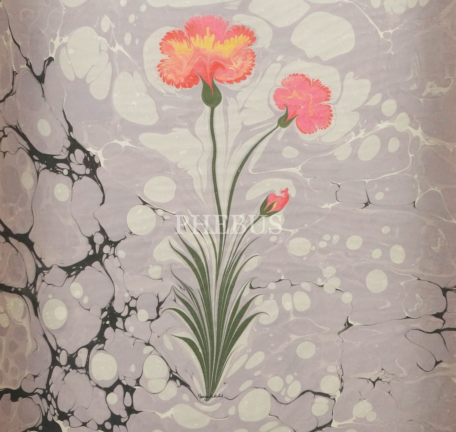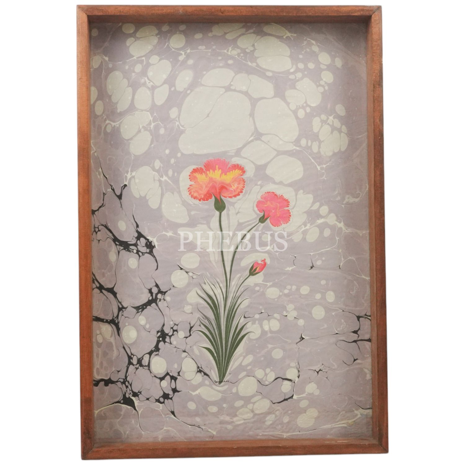 Başak Kızıltoprak İmzalı karanfil ebrusu, çerçeve içi: 39x59 cm...