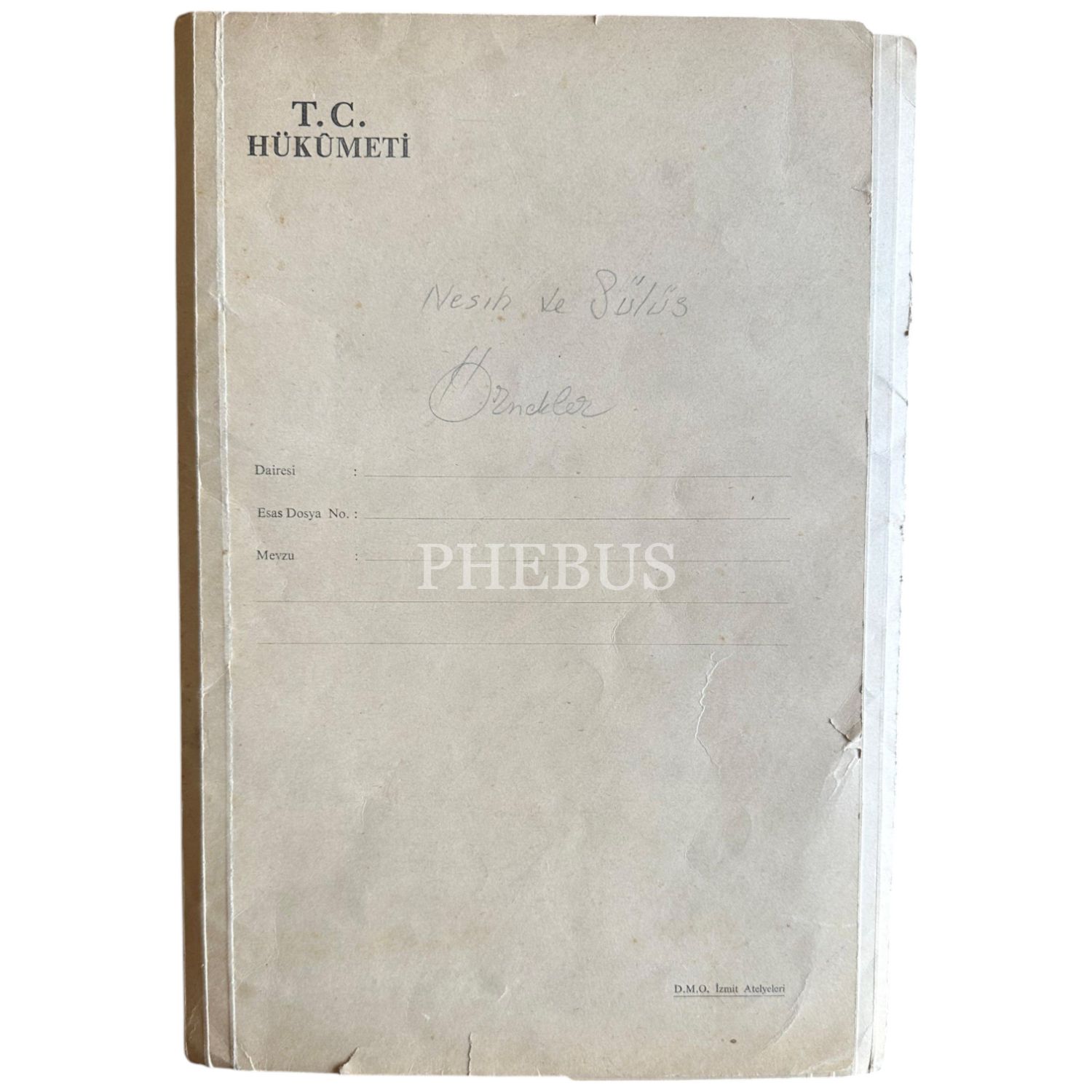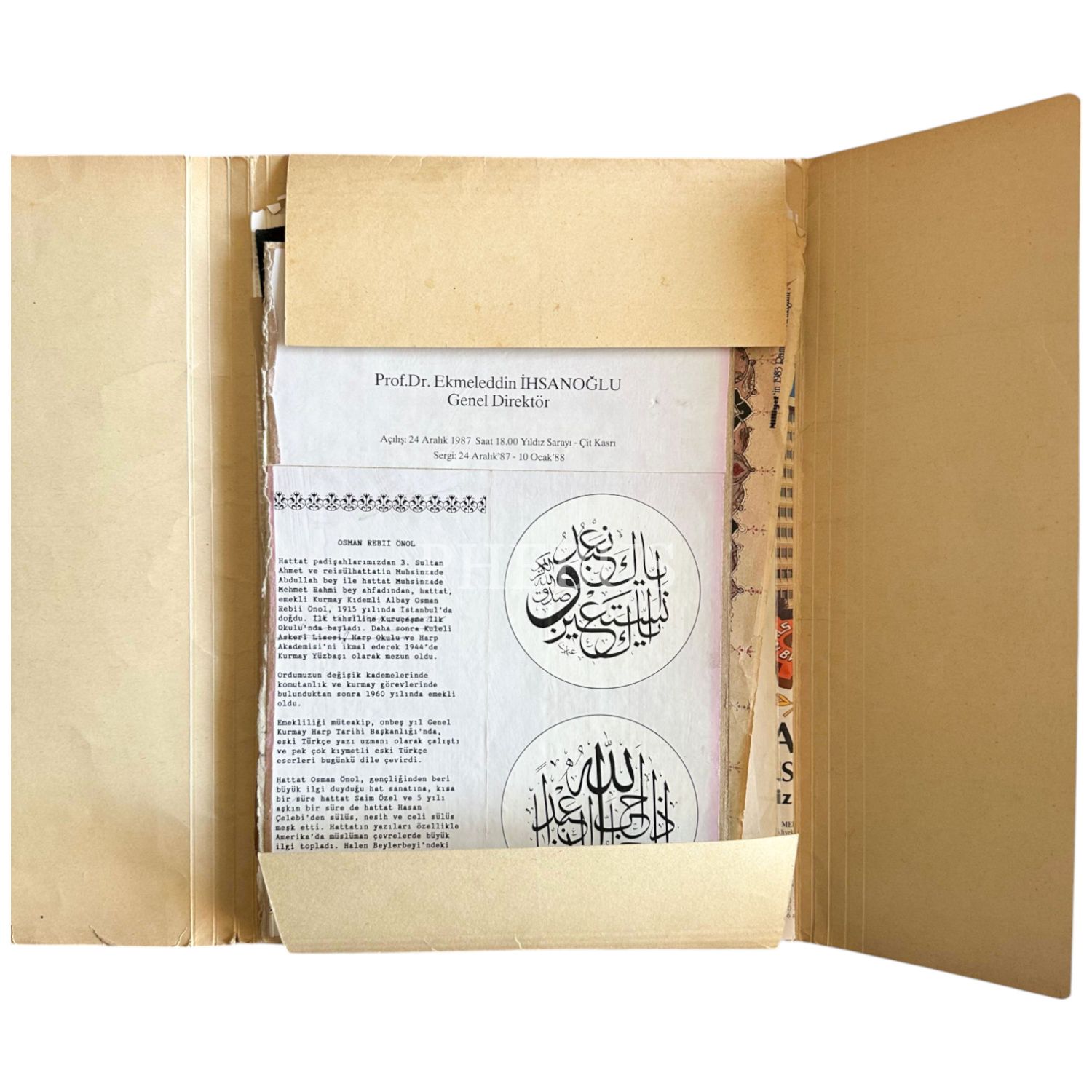 Osman Rebii Önol Hat Sergisi hakkında çeşitli efemeralar ile baskı meşkler, toplam 17 parça, klasör ölçü: 36x25 cm...