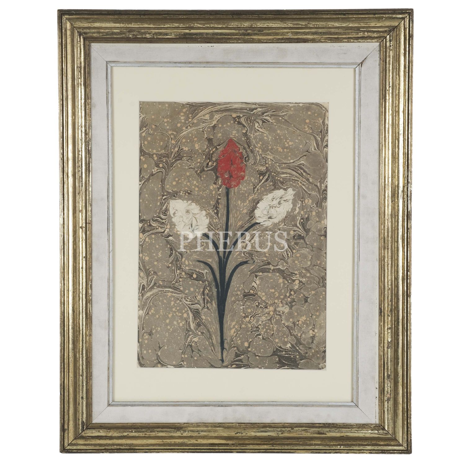 Mustafa Düzgünman imzalı karanfil ebrusu, ebru ölçü: 33x47 cm, çerçeve ölçü: 63x79 cm...