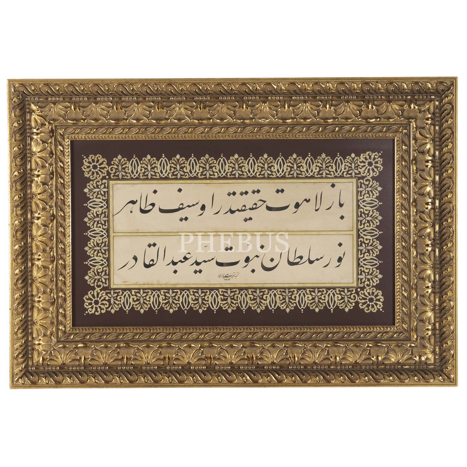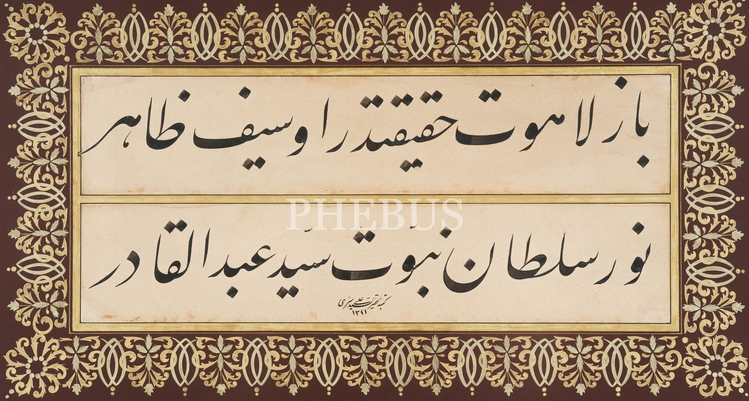 Seyyid Ali Sırrı ketebeli celî talik levha, hicri 1321 tarihli, çerçeve içi ölçü: 49x28 cm...