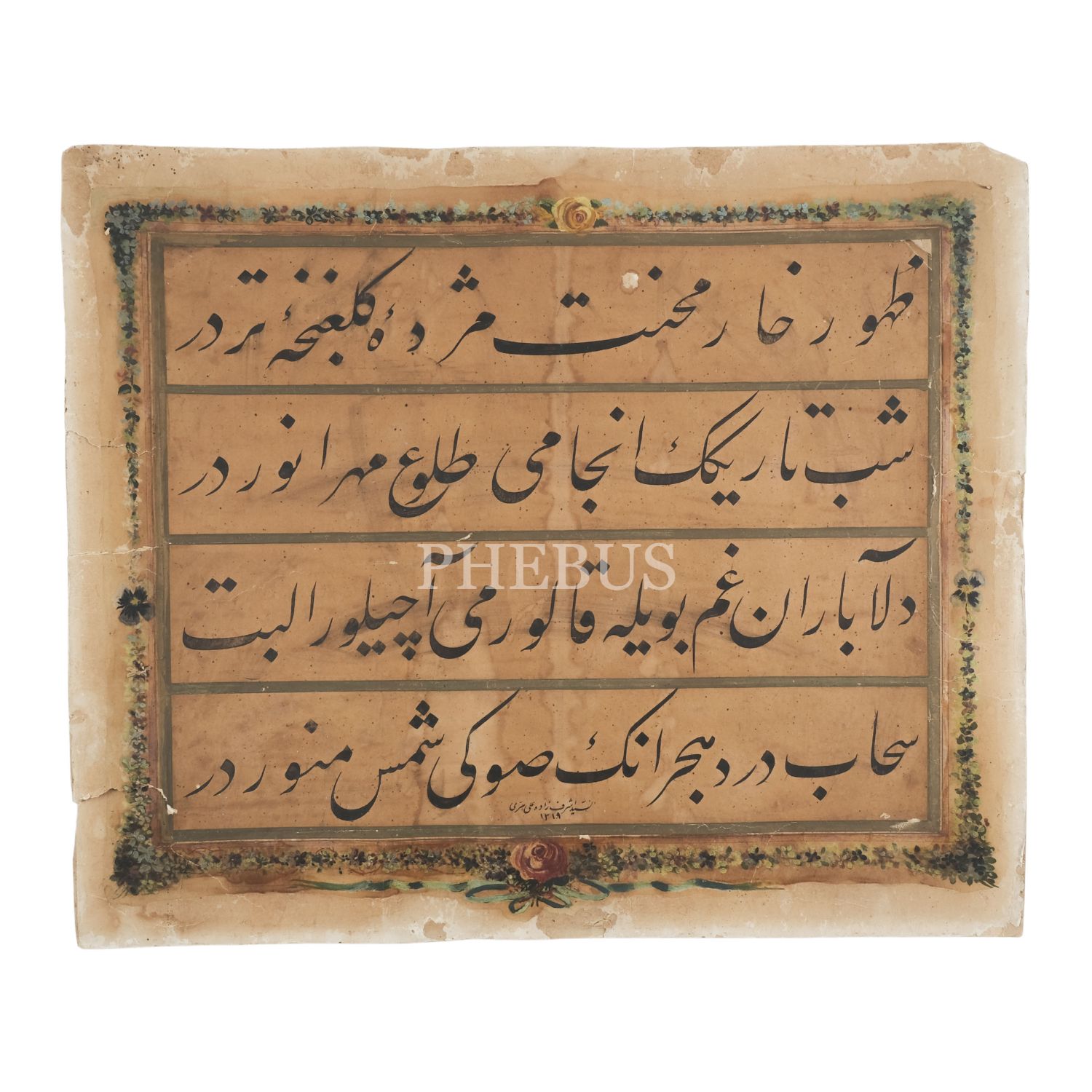 Okunuşu: "Zuhûr-ı hâr-ı mihnet müjde-i gülgonca-i terdir