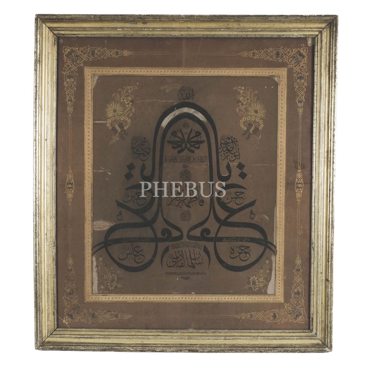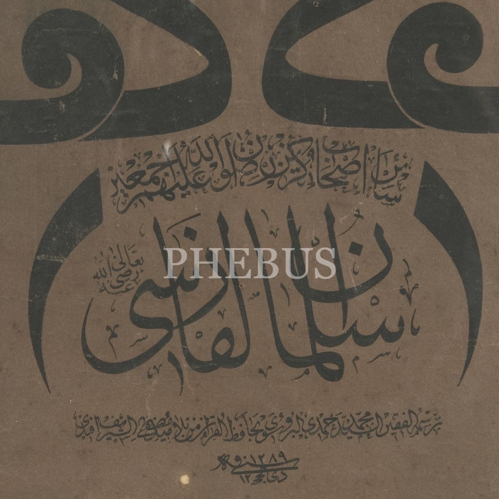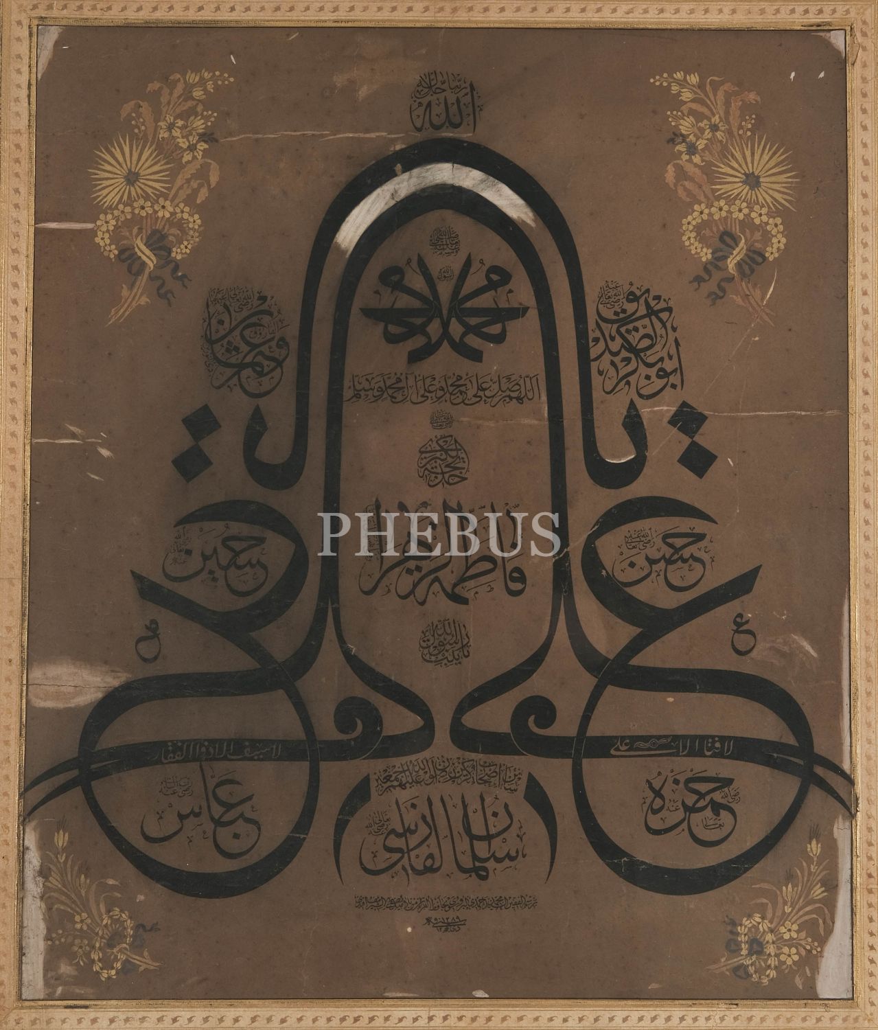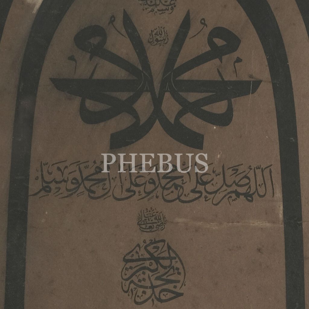 En üstte Allah lafzı, ortada müsenna olarak Hz. Muhammed´in (as) ve Hz. Ali´nin (ra) isimleri, etrafında Hz. Hatice, Hz Fatıma, Hz. Ebubekir, Hz. Ömer, Hz. Osman, Hz. Ali, Hz. Hasan, Hz. Hüseyin, Hz. Hamza ve Hz. Abbas´ın (r.anhüm) isimlerinin yazılı olduğu bir nevi Hamse-i âl-i aba levhası.