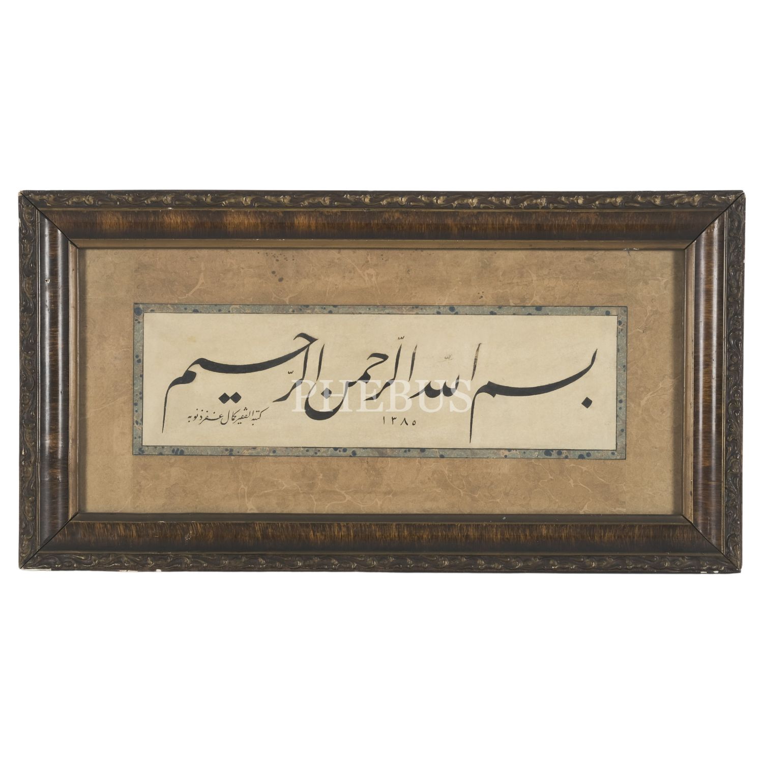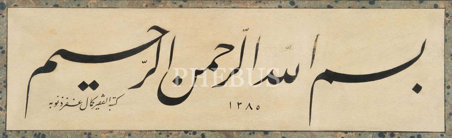 Kemal Batanay ketebeli celî talik Besmele, hicri 1385 tarihli, çerçeve içi ölçü: 48x22 cm...