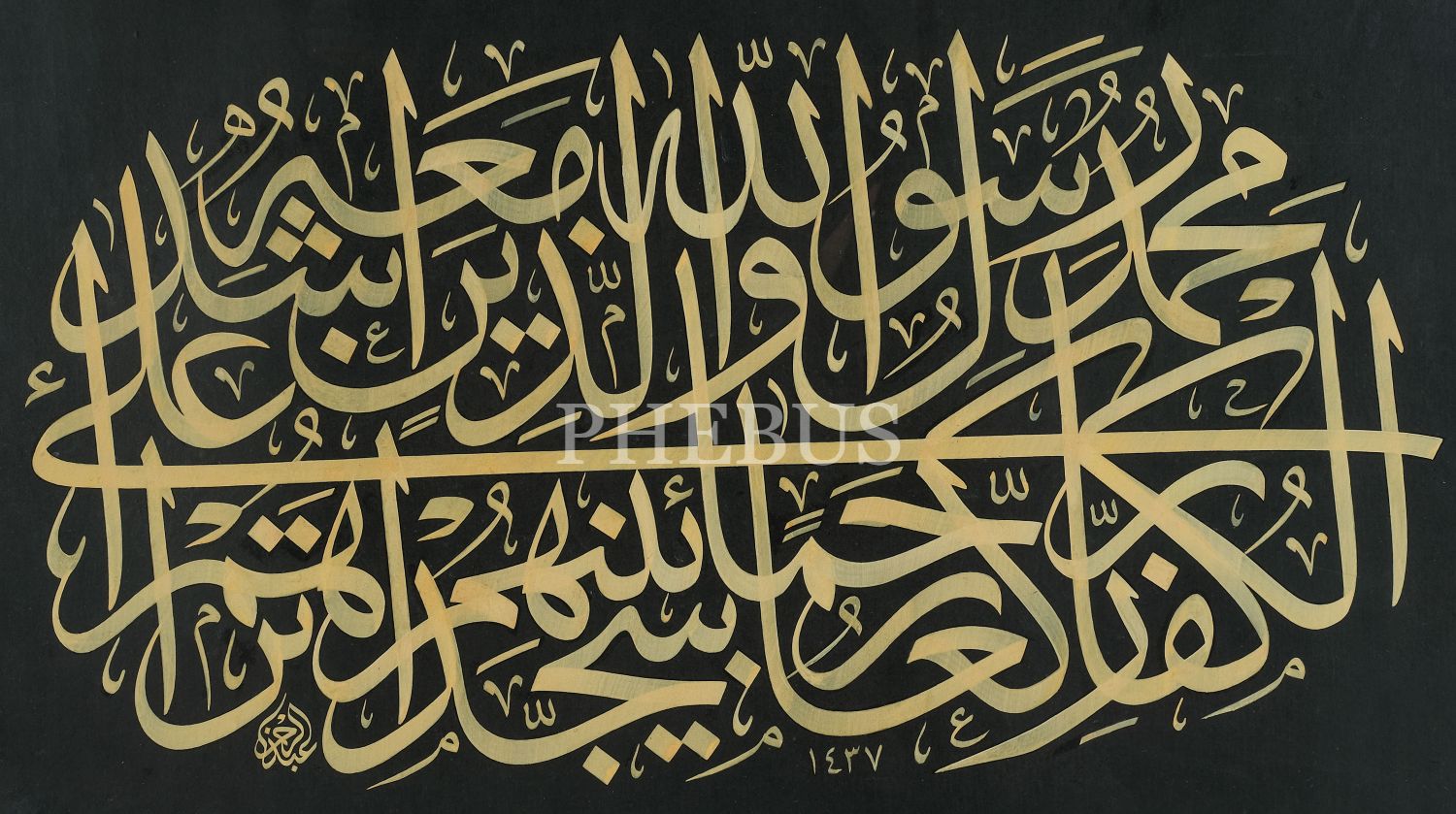 Okunuşu: "Muhammedün Resûlullah, vellezîne meahu eşiddâu ale´l-küffâri ruhamâu beynehüm terahüm rukkean süccedâ". (Fetih suresi 29. âyet).