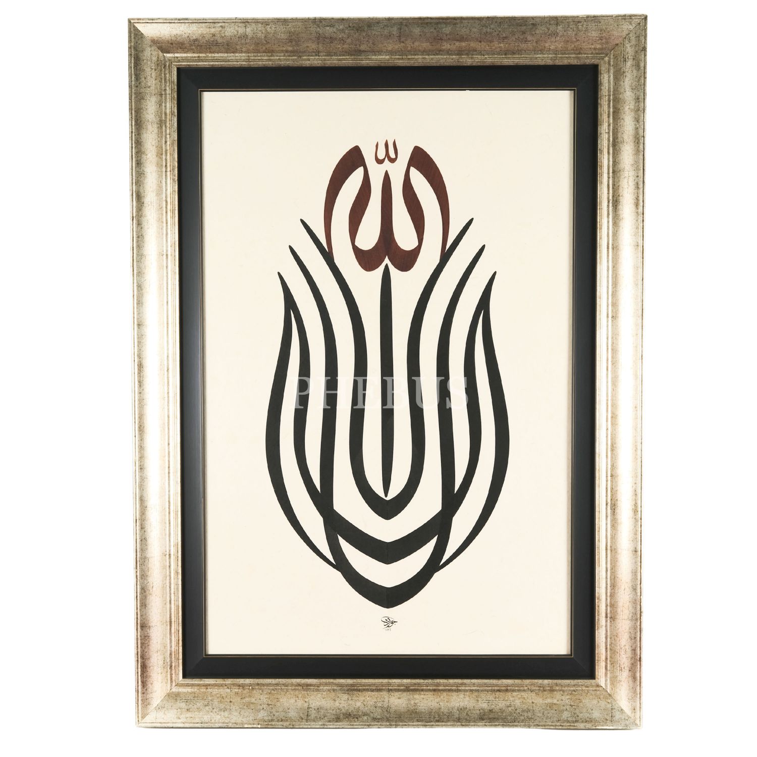 Cevat (Huran) ketebeli celî sülüs müsennâ kelime-i tevhid, 1434 tarihli, yazı ölçü: 64x98 cm, çerçeve ölçü: 89x123 cm...