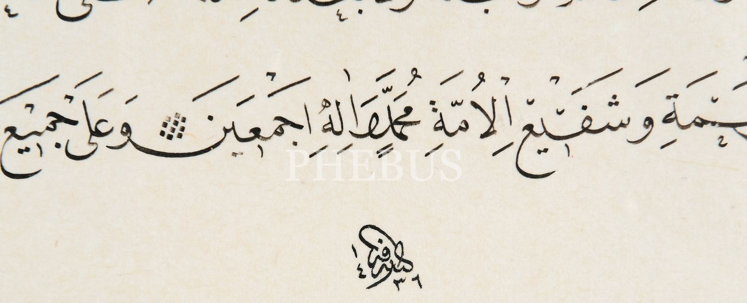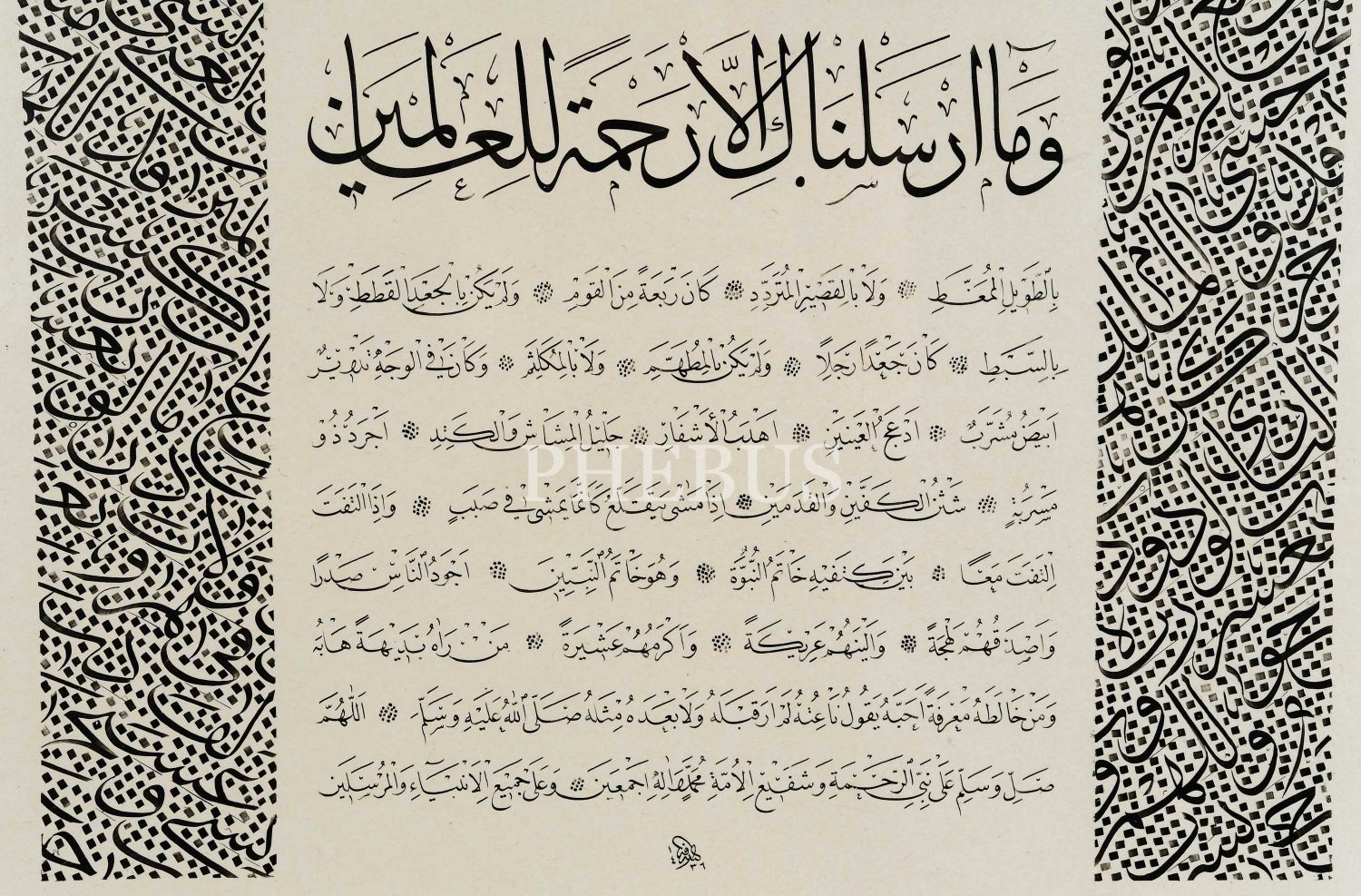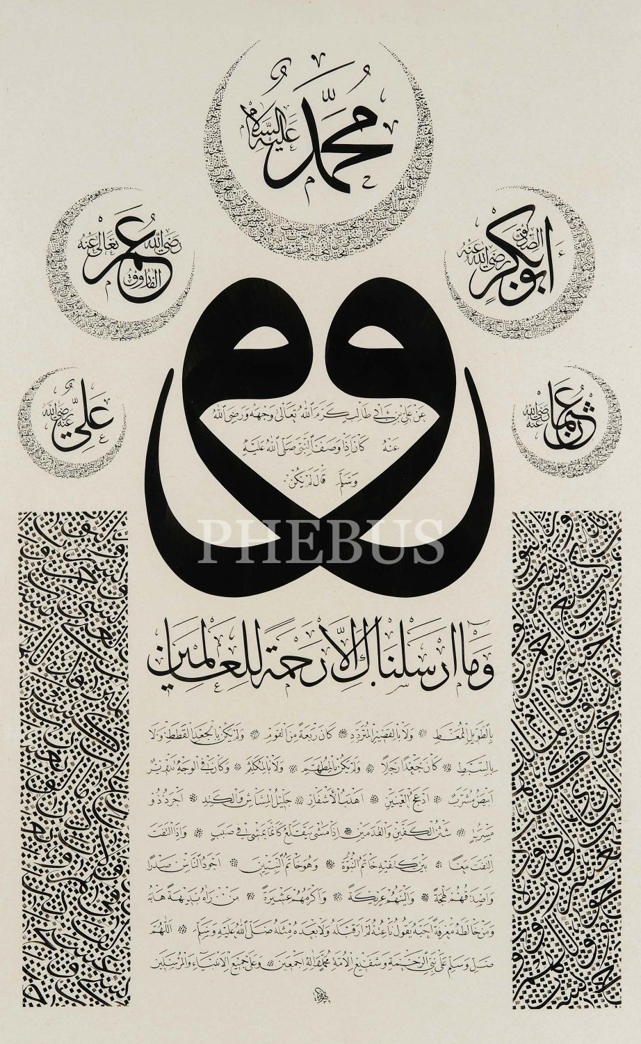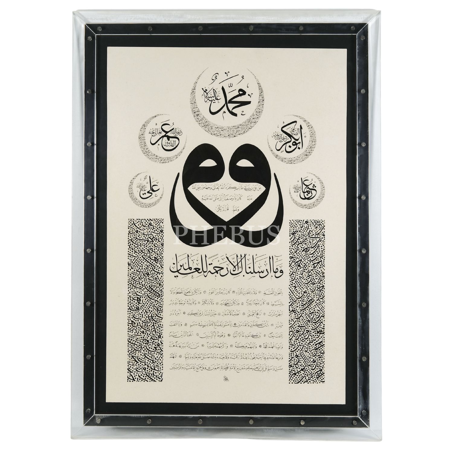 Mustafa Cemil Efe ketebeli hilye-i şerife, 1436 tarihli, yazı ölçü: 61x90 cm, çerçeve ölçü: 78x109 cm...