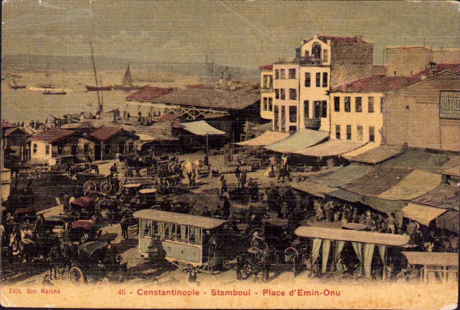 Osmanlı dönemi ipek kartpostal, Eminönü İstanbul, editör Au bon marche