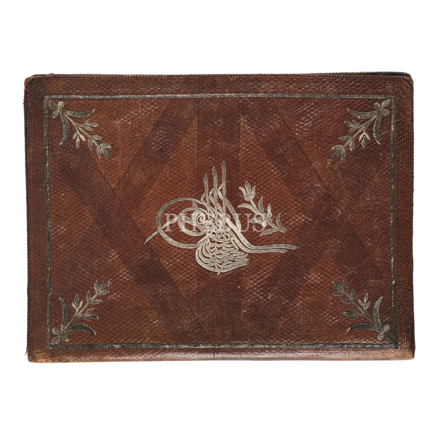 Sultan 2. Abdülhamid Han tuğralı Osmanlı dönemi işlemeli cilbent, 22x30 cm...