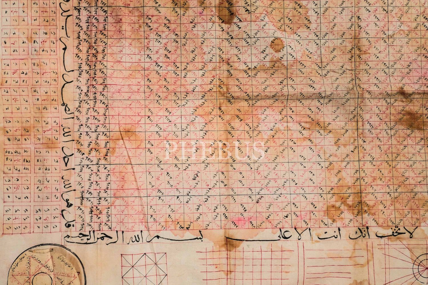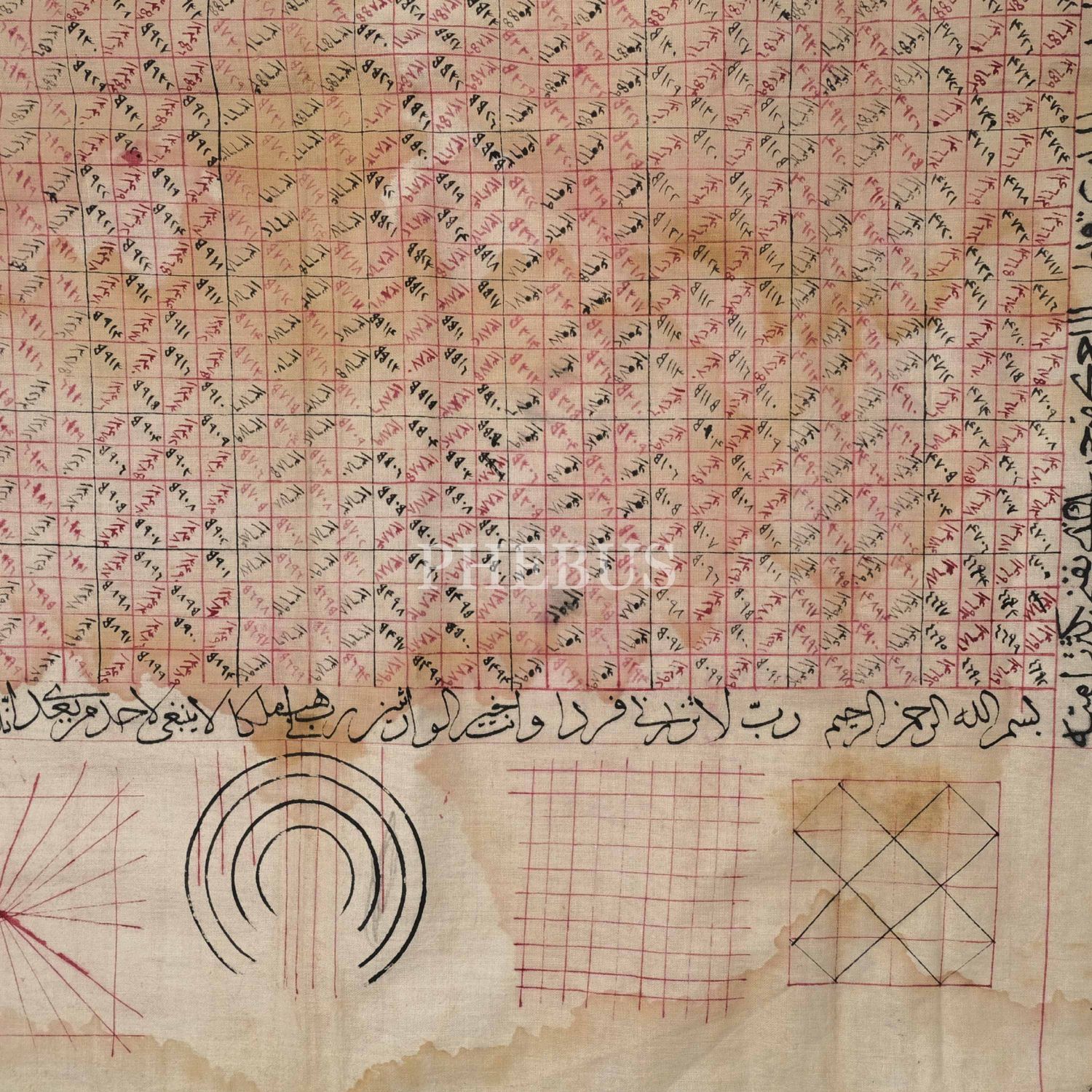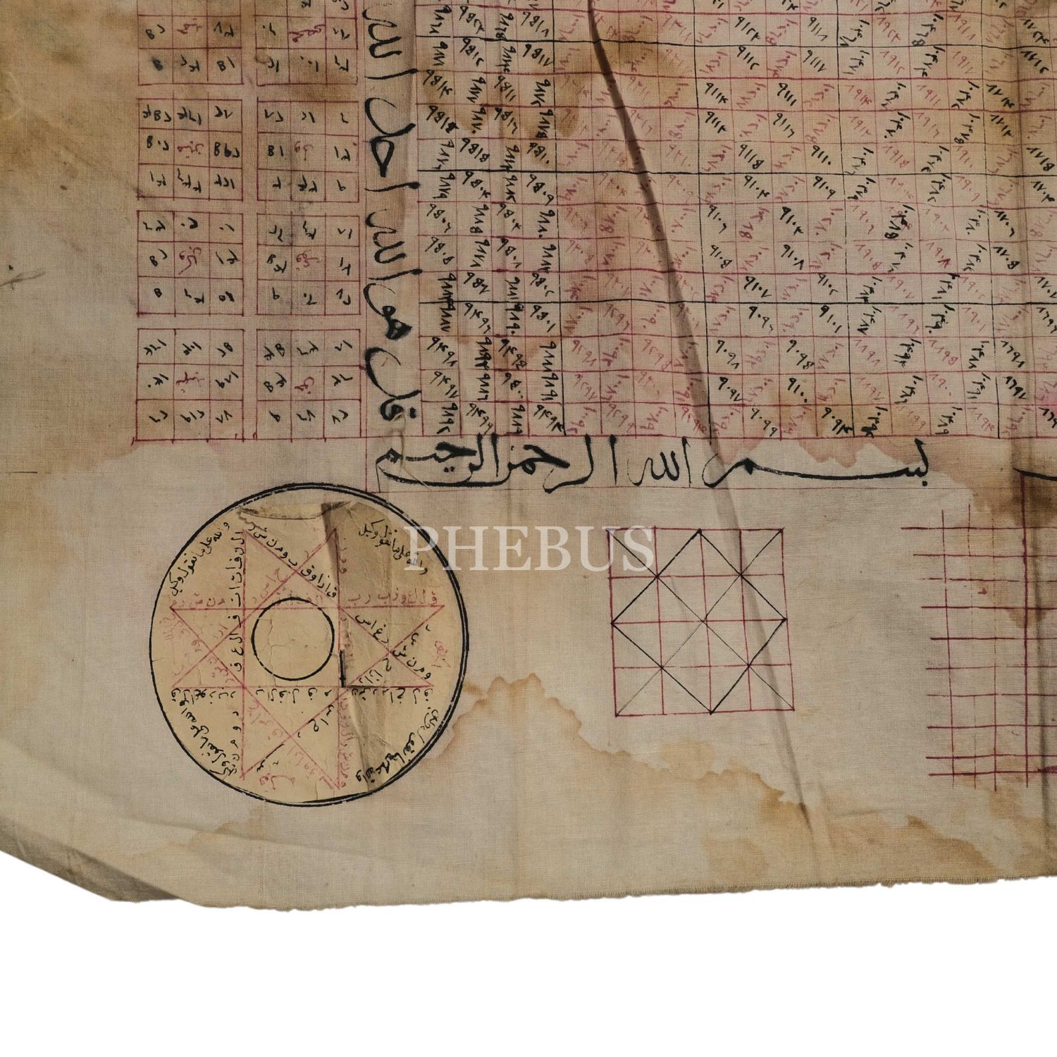 Osmanlı dönemi tılsımlı örtü, havas kitaplarında "Evlat Duası" veya "Duâ-i Evlâd" adıyla geçen dualar yazılı, 120x114 cm...