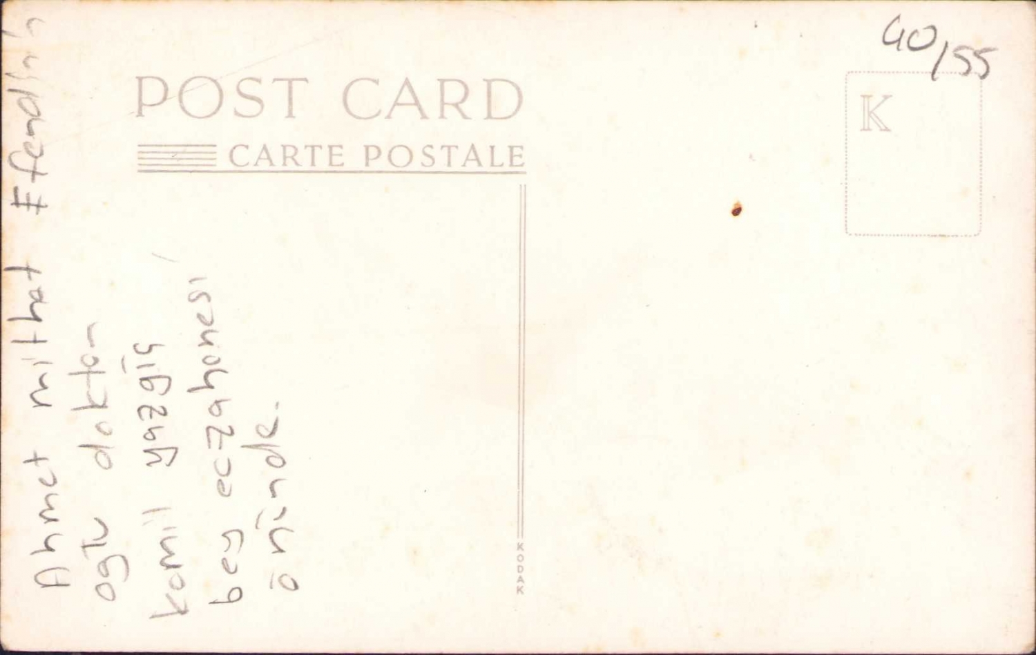 Ahmet Mithat Efendi'nin oğlu doktor Kamil Yazgıç Bey eczanesinin önünde, imzalı, 1941