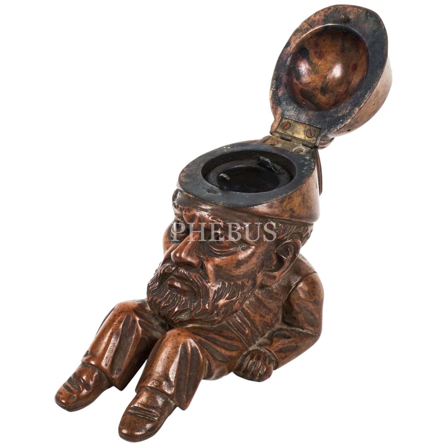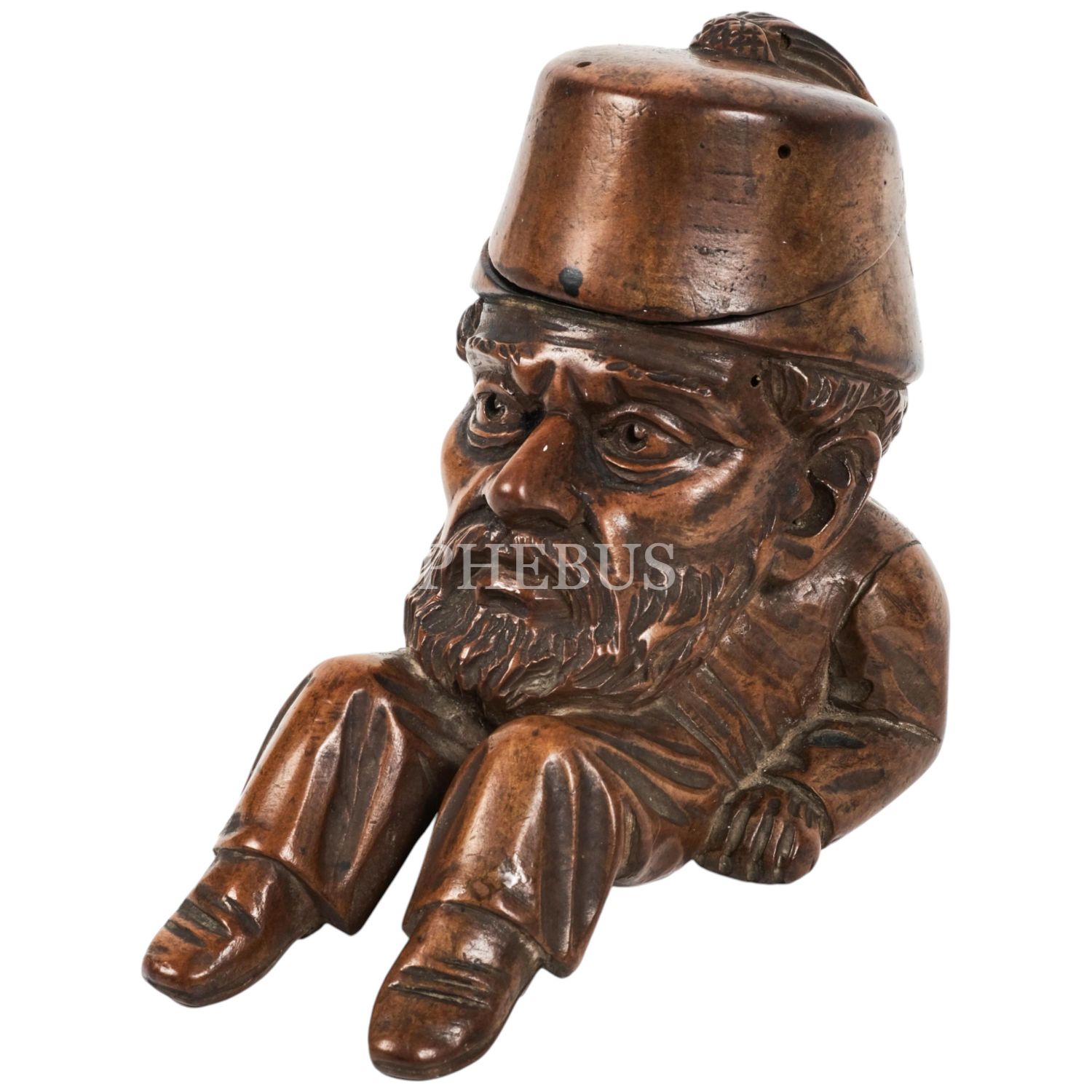 Oturan bir Osmanlı paşası formunda üretilen ahşap hokka, 9x13x7 cm...