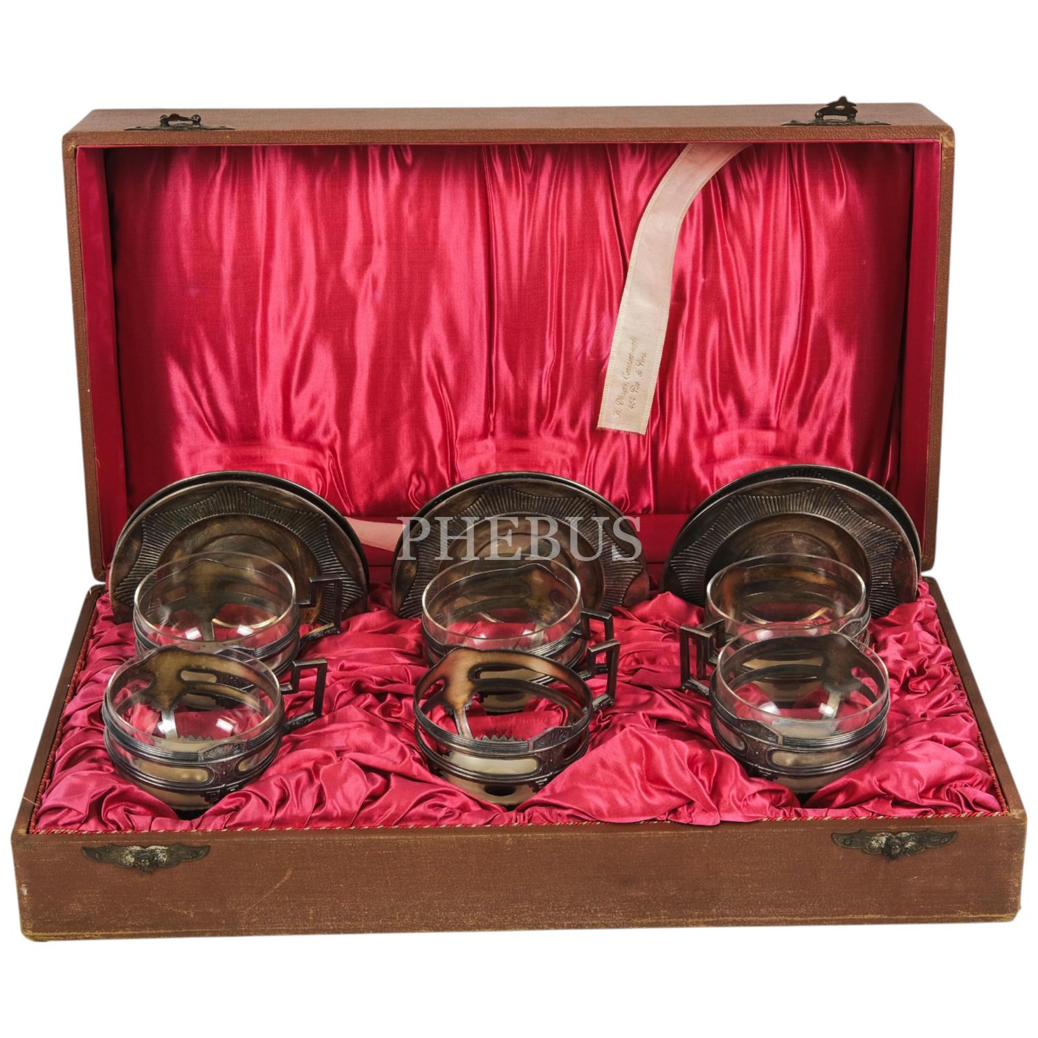 H. Decugis, Constantinople" etiketli 6 kişilik çay takımı, orijinal kutusunda, kutu 50x26x15 cm...