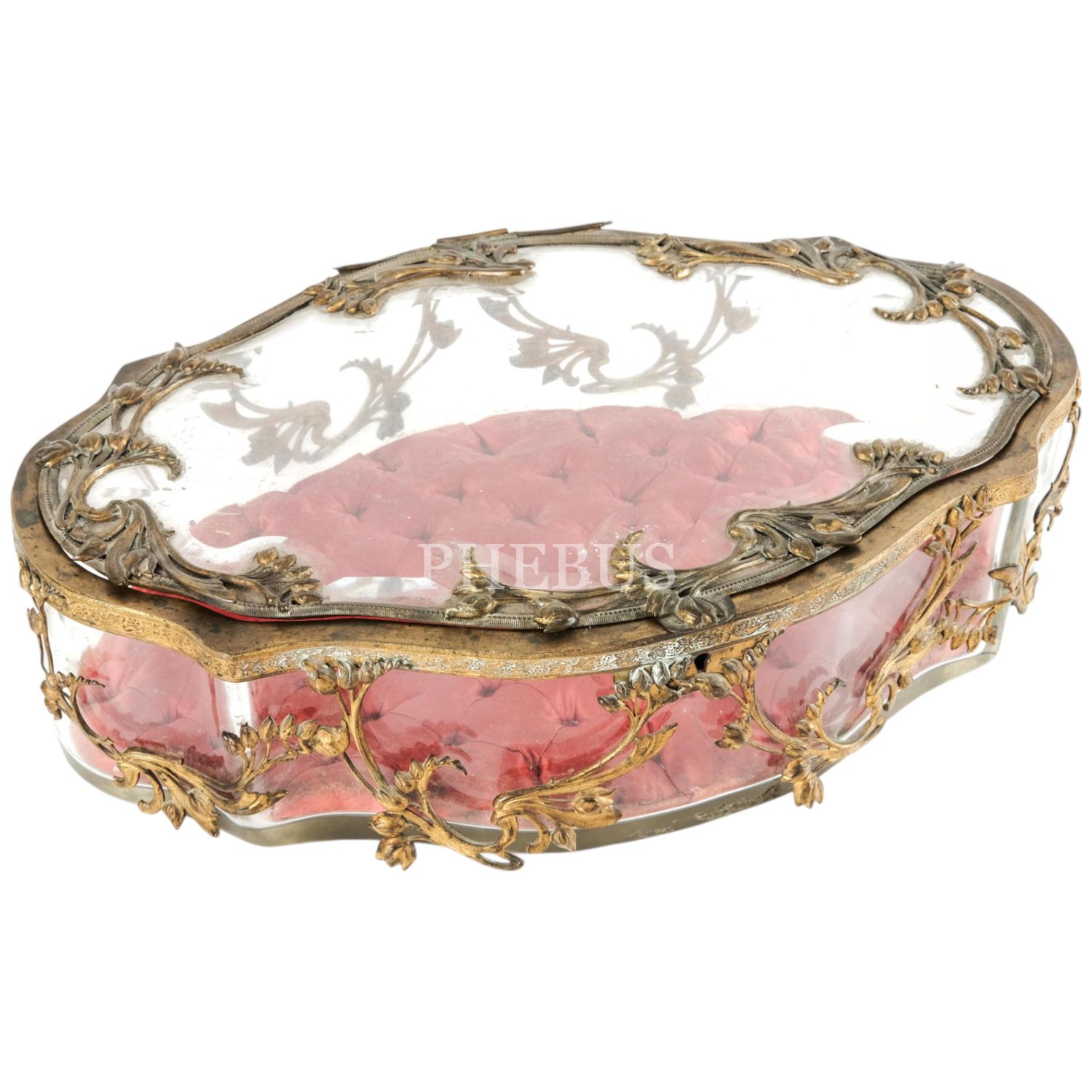 Osmanlı döneminden, floral desenlerle bezeli cam takı kutusu, 40x25x10 cm...