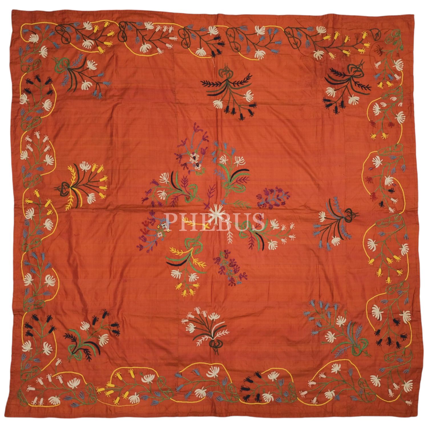 1890´larda dokunmuş, ipek üzerine suzani desenlerle bezeli bohça örtüsü, 145x145 cm...