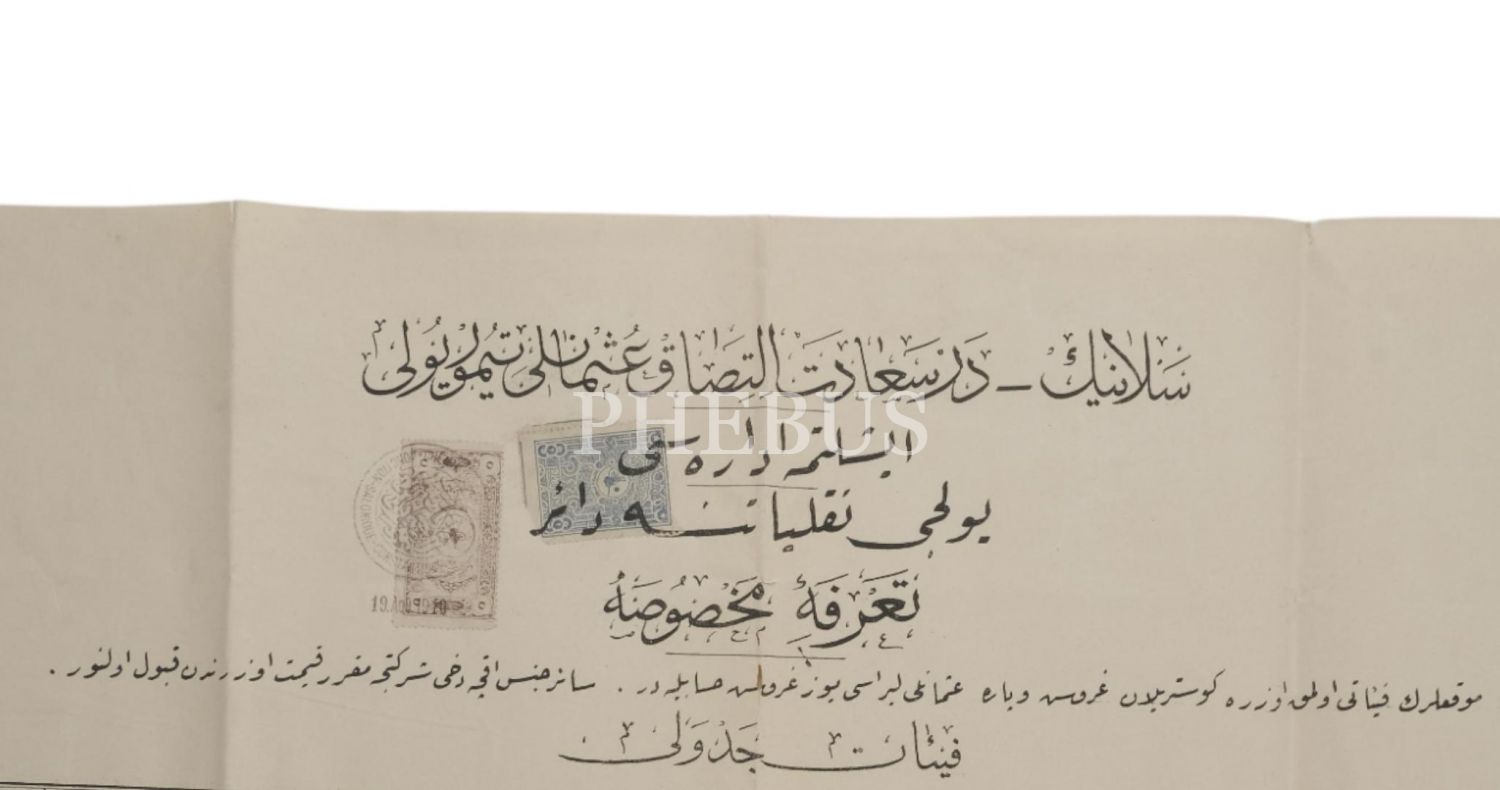 Selanik-Dersaadet (İstanbul) İltisak-ı Osmanlı Demiryolu hattının mührünü taşıyan tarifede, hat boyunca uğranan istasyonların isimleri de tek tek yazılmıştır.
