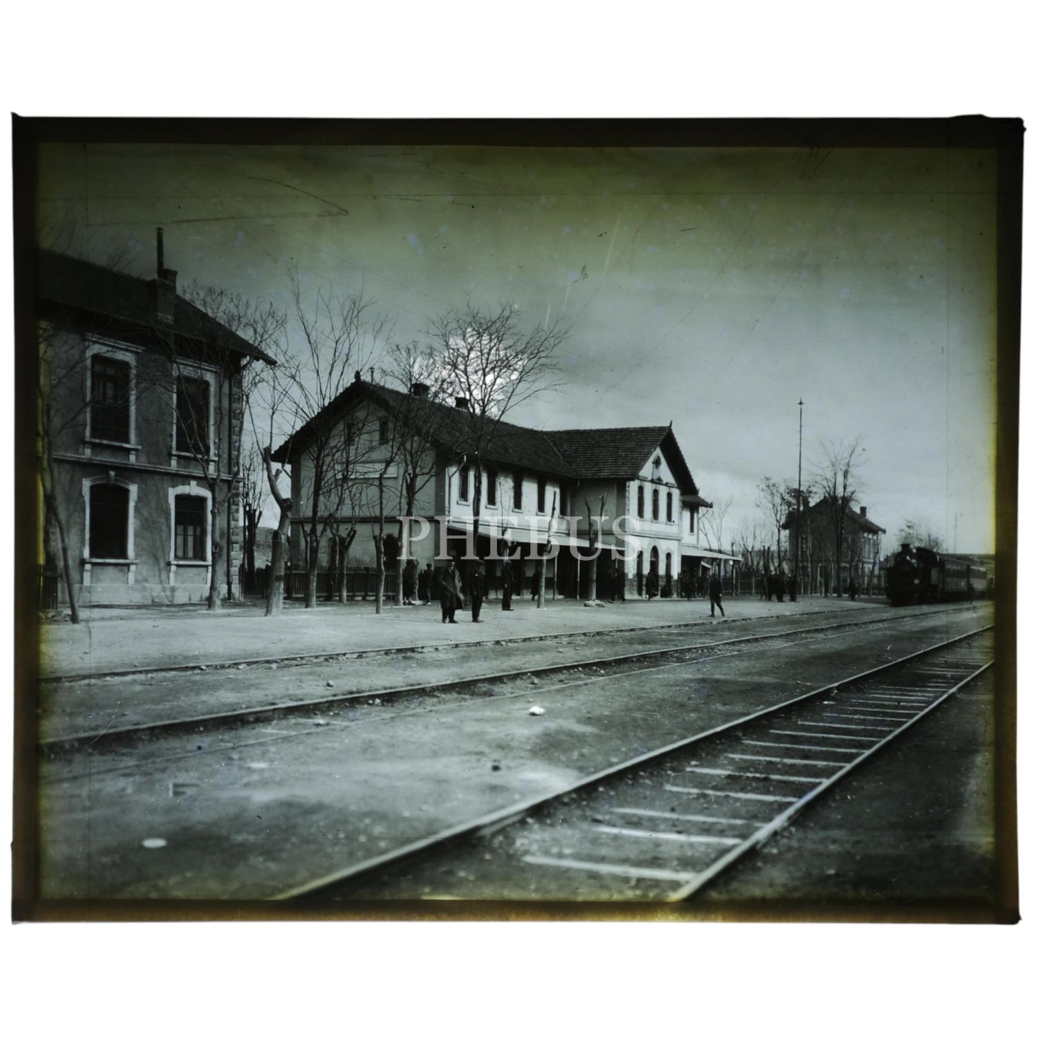 Tren istasyonları ve demiryolları fabrikalarından görüntüler içeren 9 adet cam negatif, 24x30 cm...
