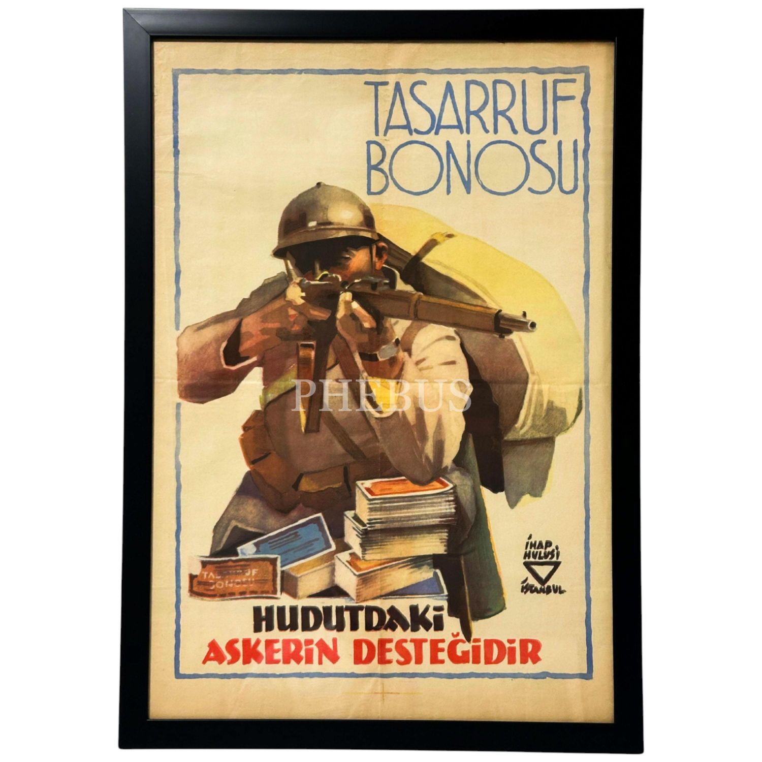 İhap Hulusi'nin tasarımında model olarak bizzat kendisini resmettiği tasarruf bonosu afişi, , 47x72 cm...