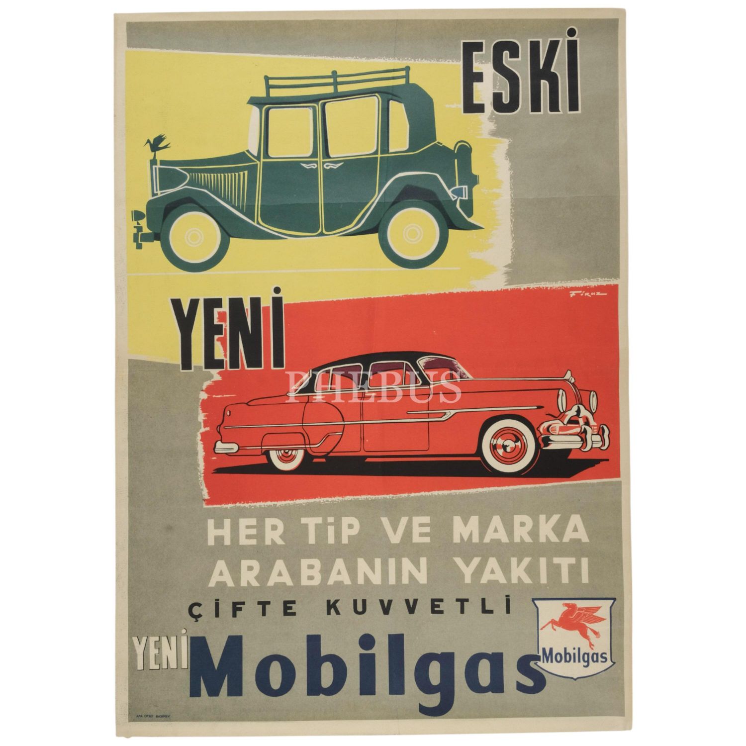 Firuz Aşkın tasarımı, "Her Tip ve Marka Arabanın Yakıtı" sloganlı Mobiloil afişi, 50x70 cm...