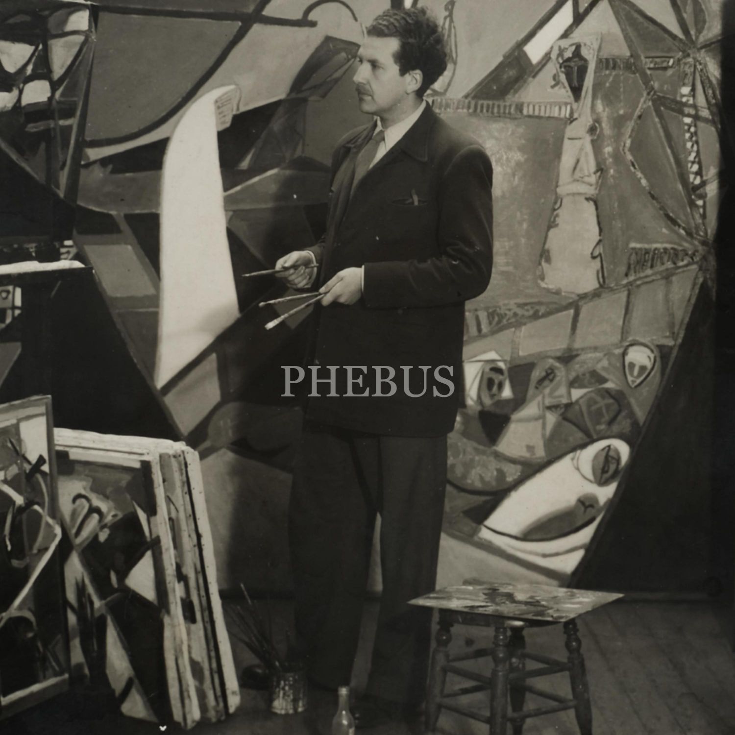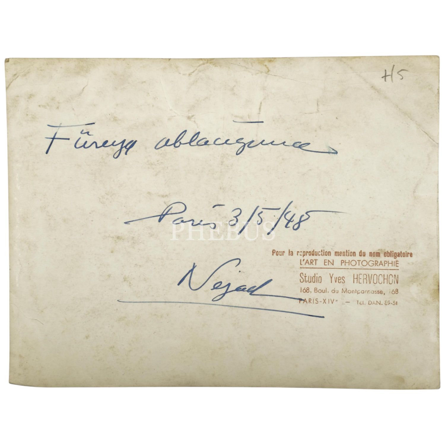 Nejad Melih Devrim´in 3.5.1948 tarihinde Paris´teki atölyesinde çekilmiş fotoğrafı, Studio Yves Hervochon, 23x18 cm...